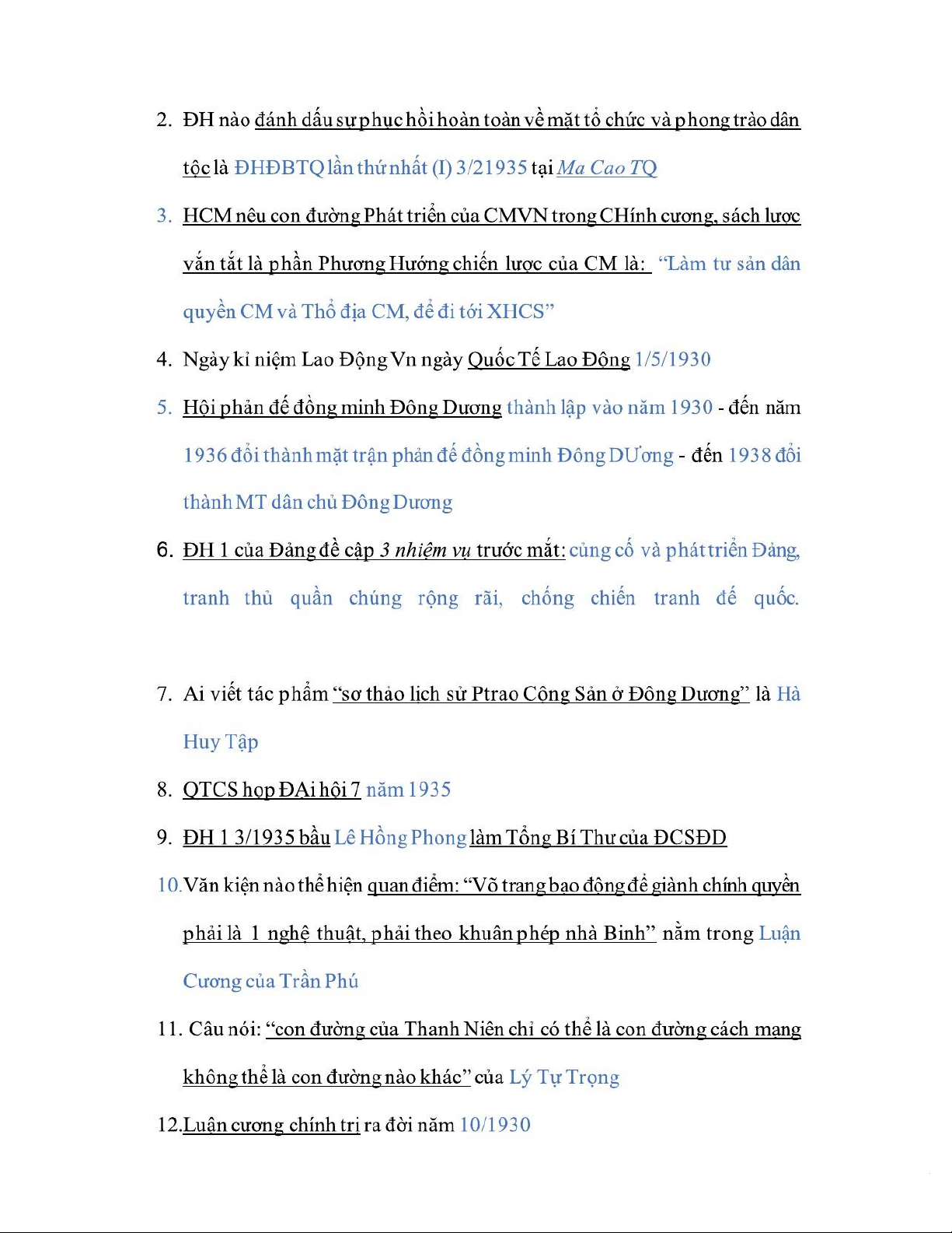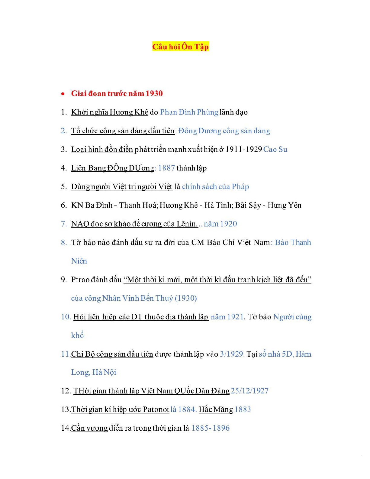 Câu hỏi ôn tập môn lịch sử Đảng -Trường Đại học văn hóa Hà Nội