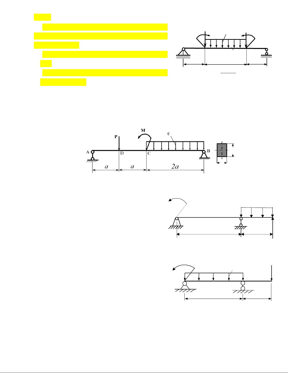 P = 10 kN; M = 8kNm, q =2kN/m; a a