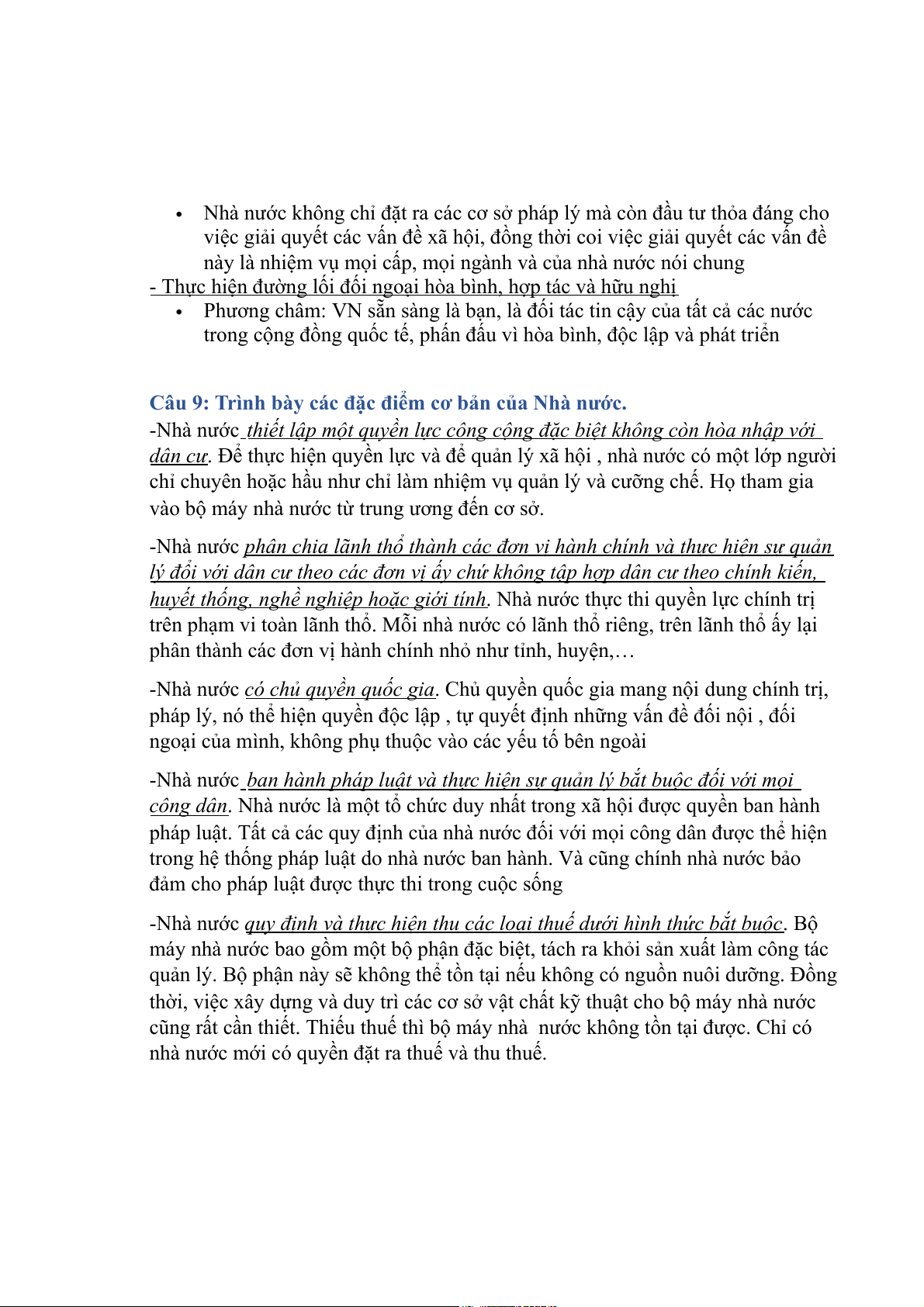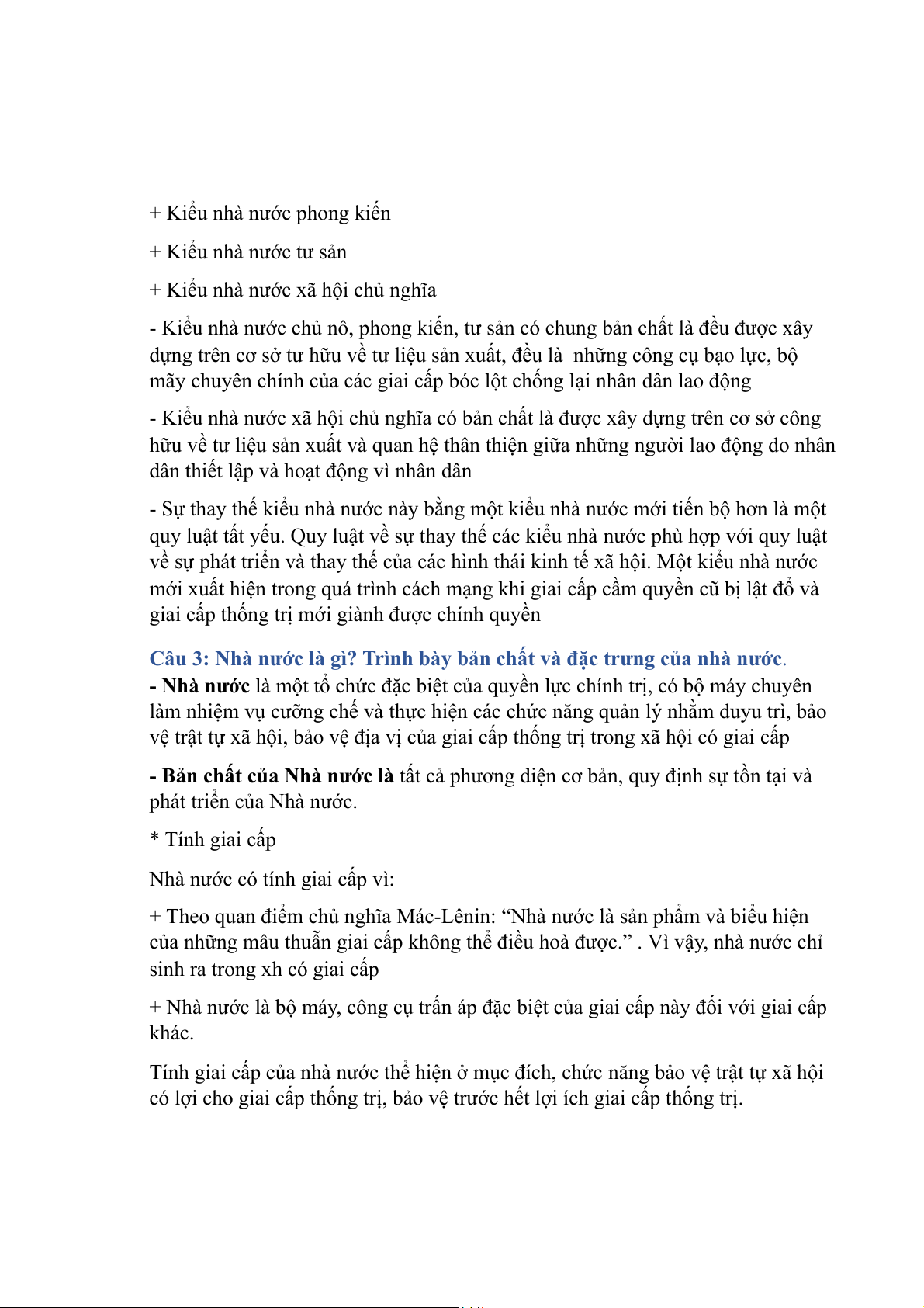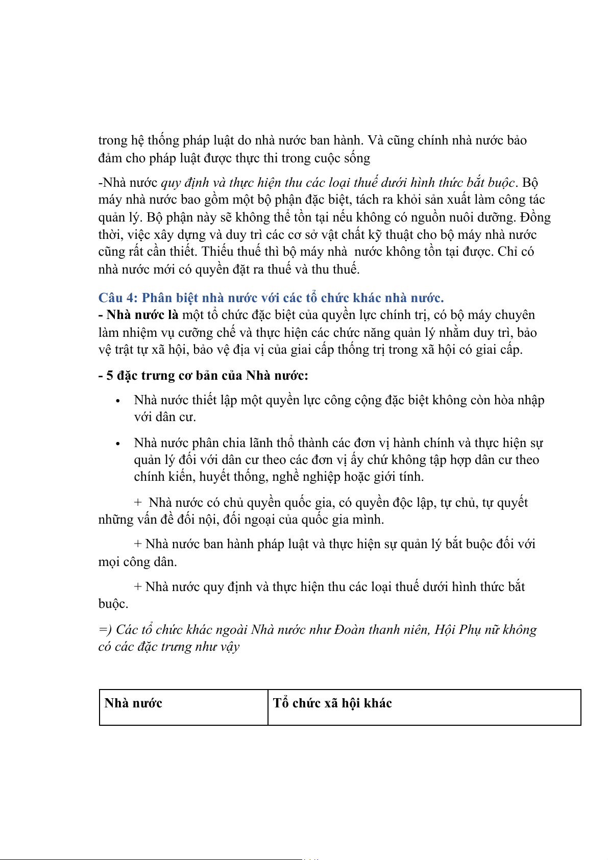 Câu 3: Nhà nước là gì? Trình bày bản chất và đặc trưng của nhà nước.