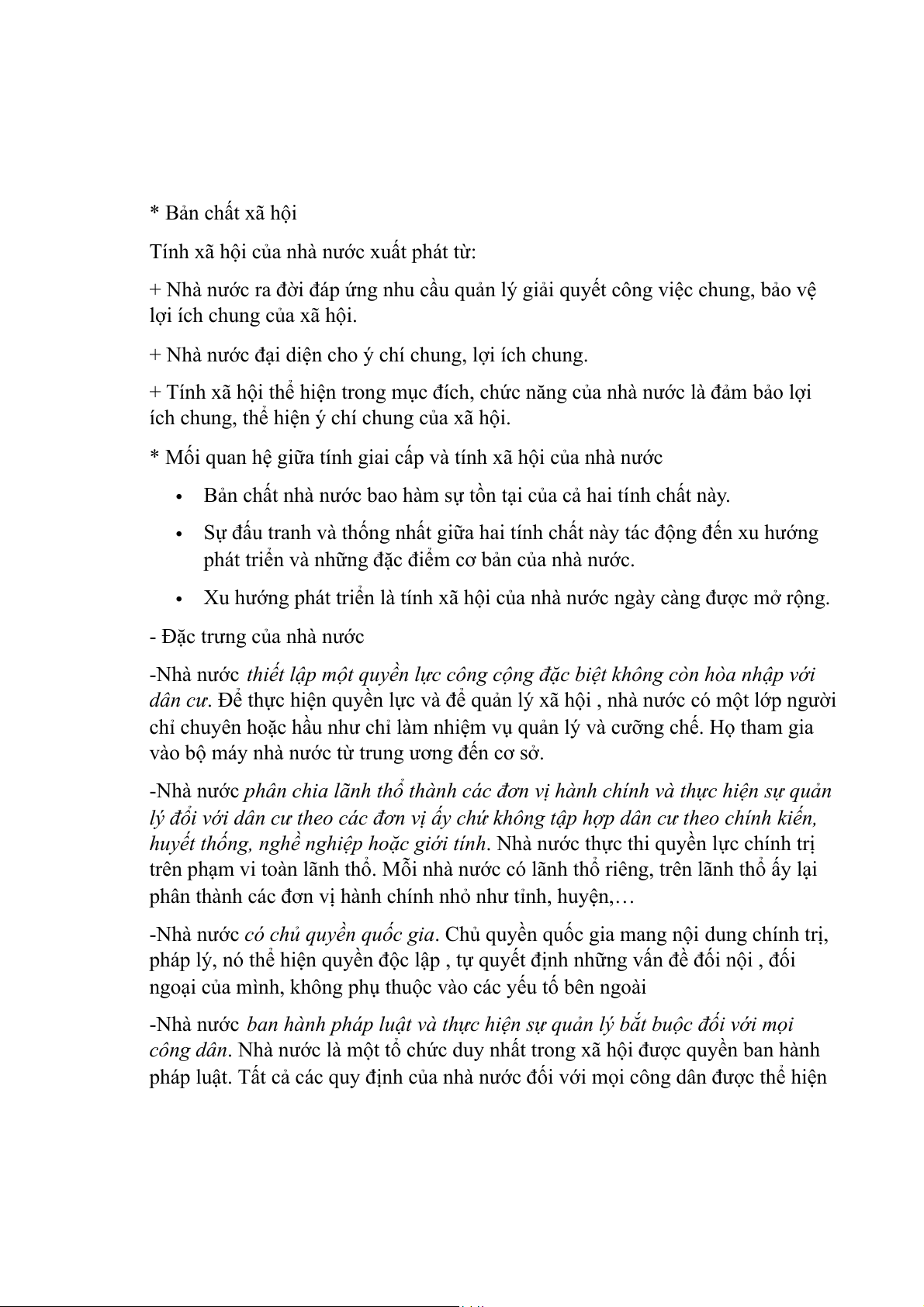 - Đặc trưng của nhà nước