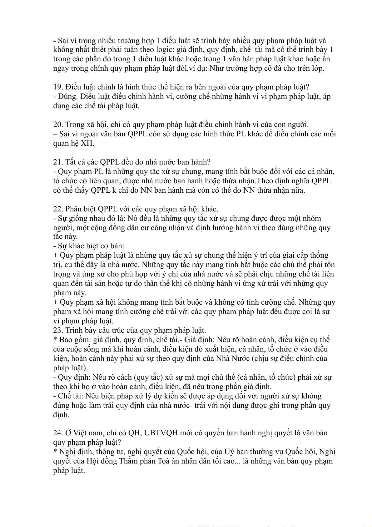 24. Ở Việt nam, chỉ có QH, UBTVQH mới có quyền ban hành nghị quyết là văn bản quy phạm pháp luật?