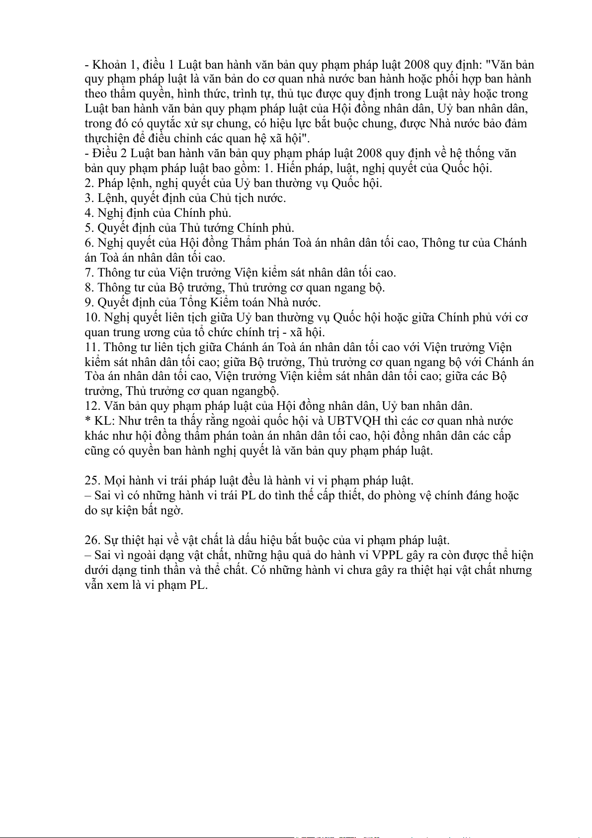 26. Sự thiệt hại về vật chất là dấu hiệu bắt buộc của vi phạm pháp luật.