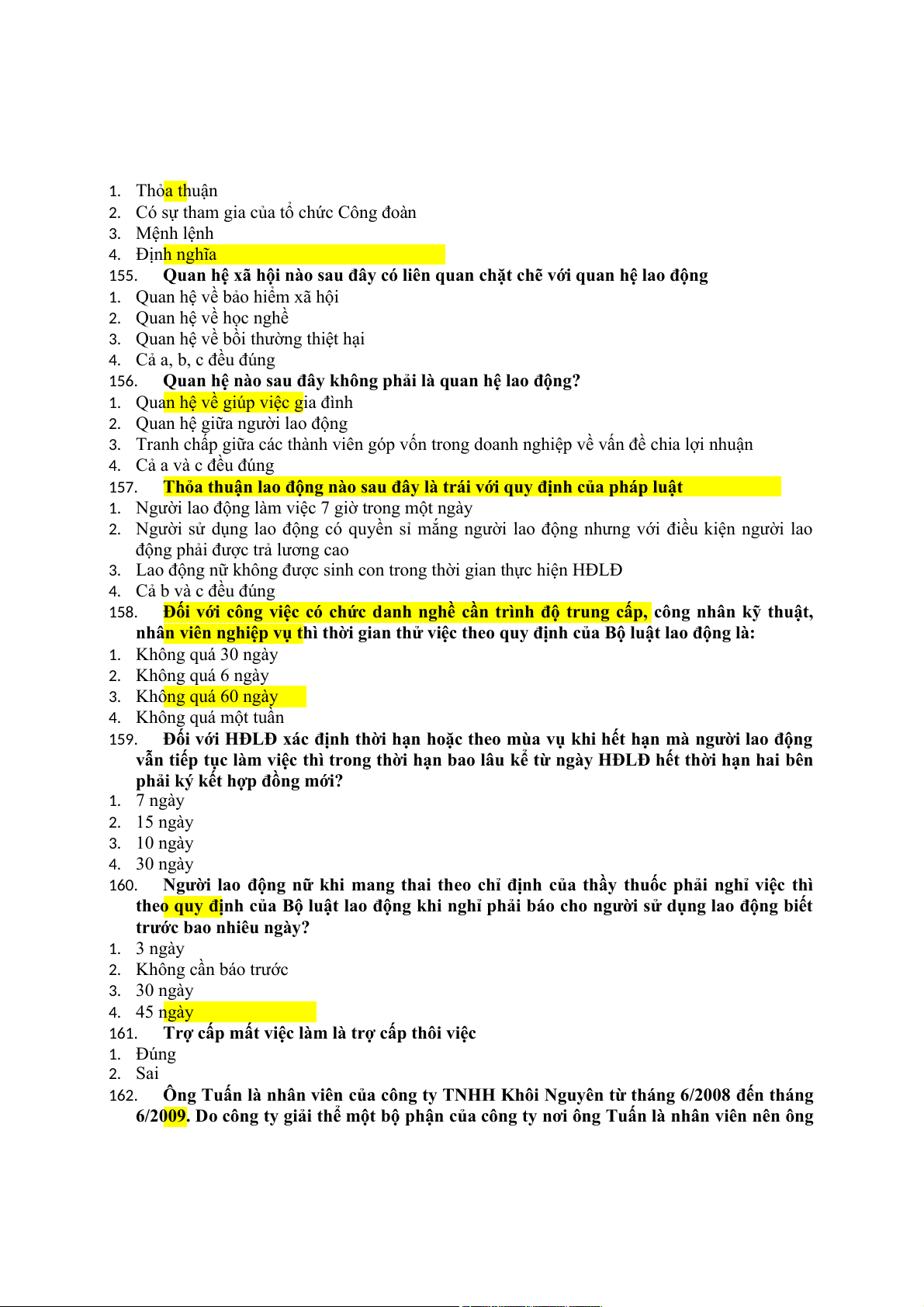 việc trong thời gian thử việc: 1. Sai 2. Đúng 169.