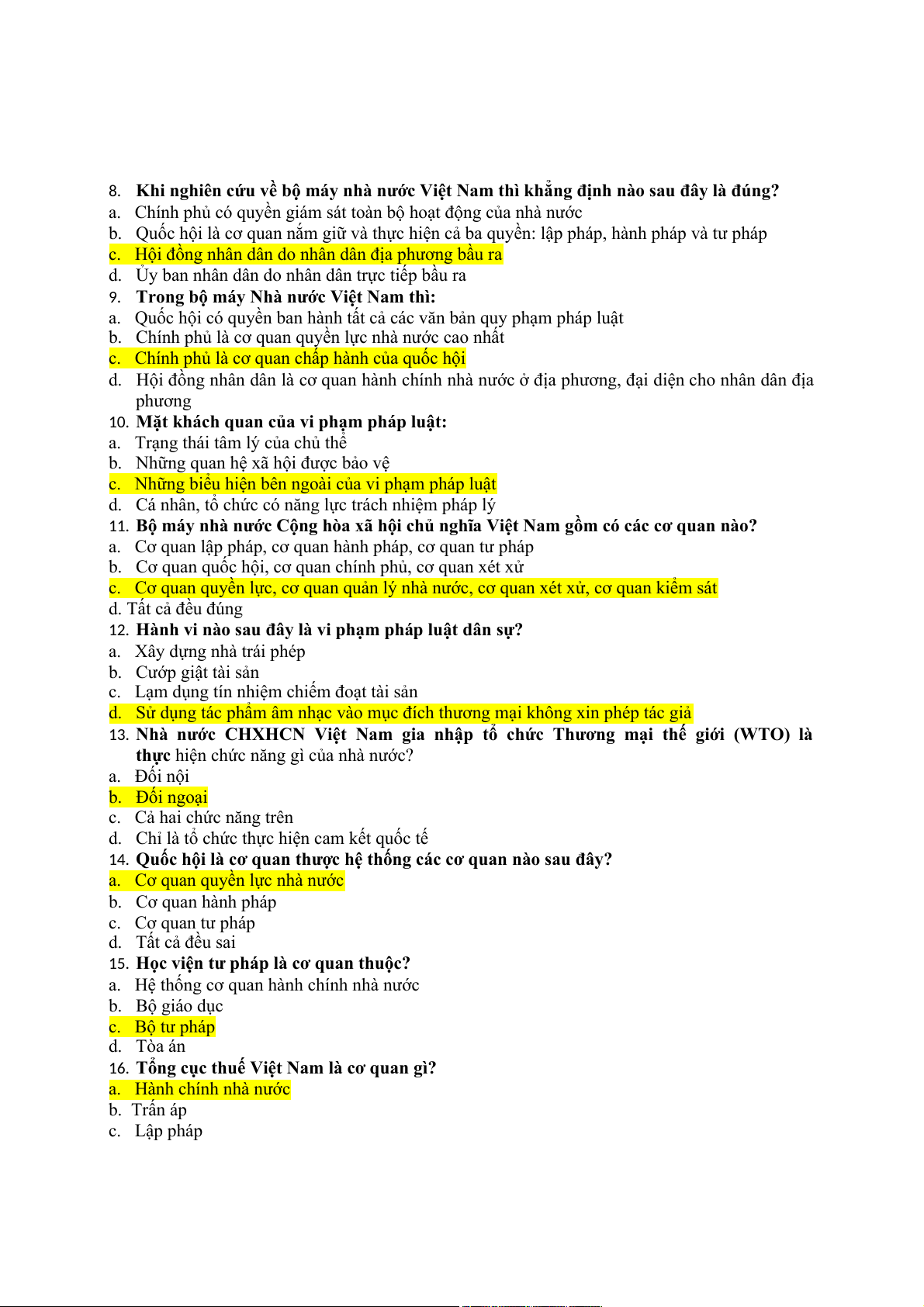 21. Đảng Cộng sản Việt Nam là cơ quan? a. Hành pháp b. Lập pháp c. Tư pháp d. Tất cả đều sai