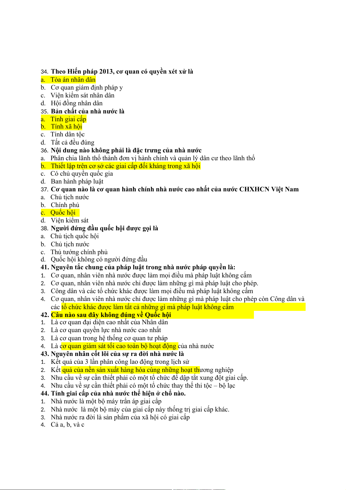 35. Bản chất của nhà nước là a. Tính giai cấp b. Tính xã hội c. Tính dân tộc d. Tất cả đều đúng