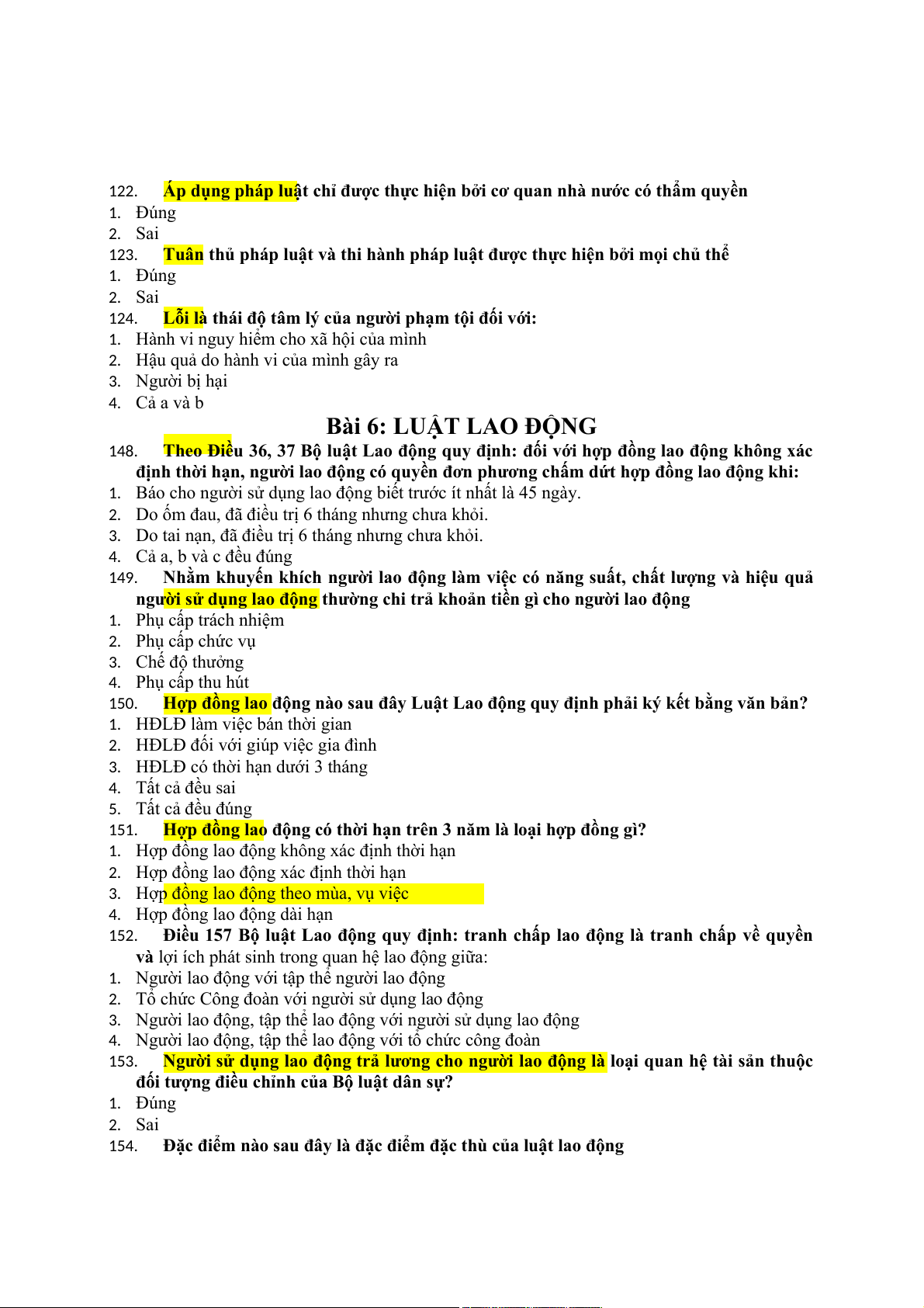 vụ của hai bên trong quan hệ lao động. 1. Bằng văn bản 2. Bằng miệng 3. Cả a và b đều đúng 4. Cả a và b đều sai 183.