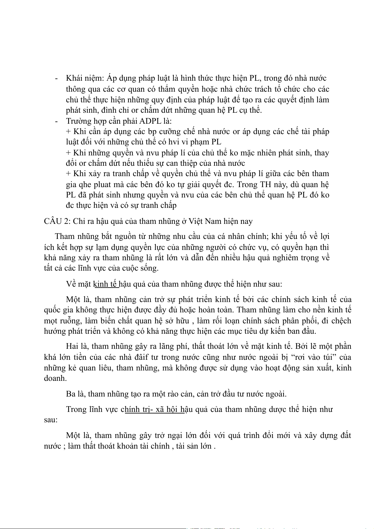 CÂU 2: Chỉ ra hậu quả của tham nhũng ở Việt Nam hiện nay