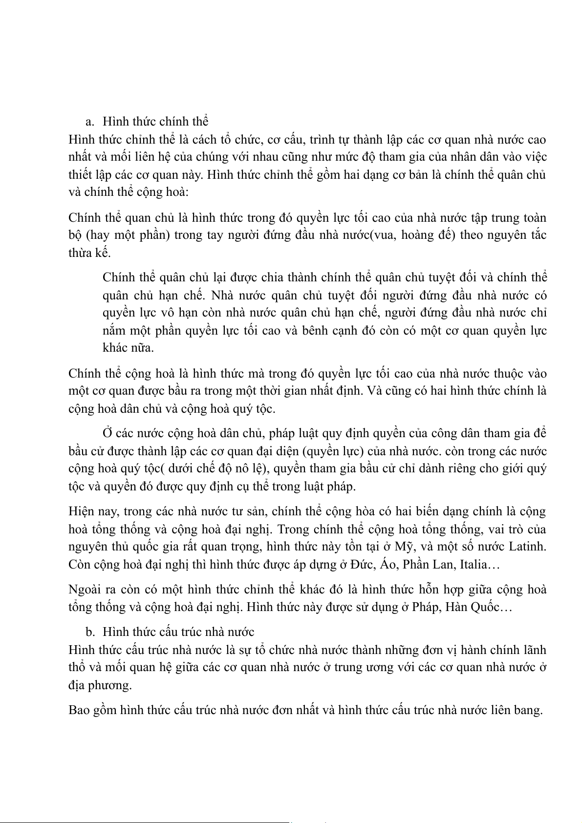 Hình thức chính thể, hình thức cấu trúc và chế độ chính trị. a. Hình thức chính thể