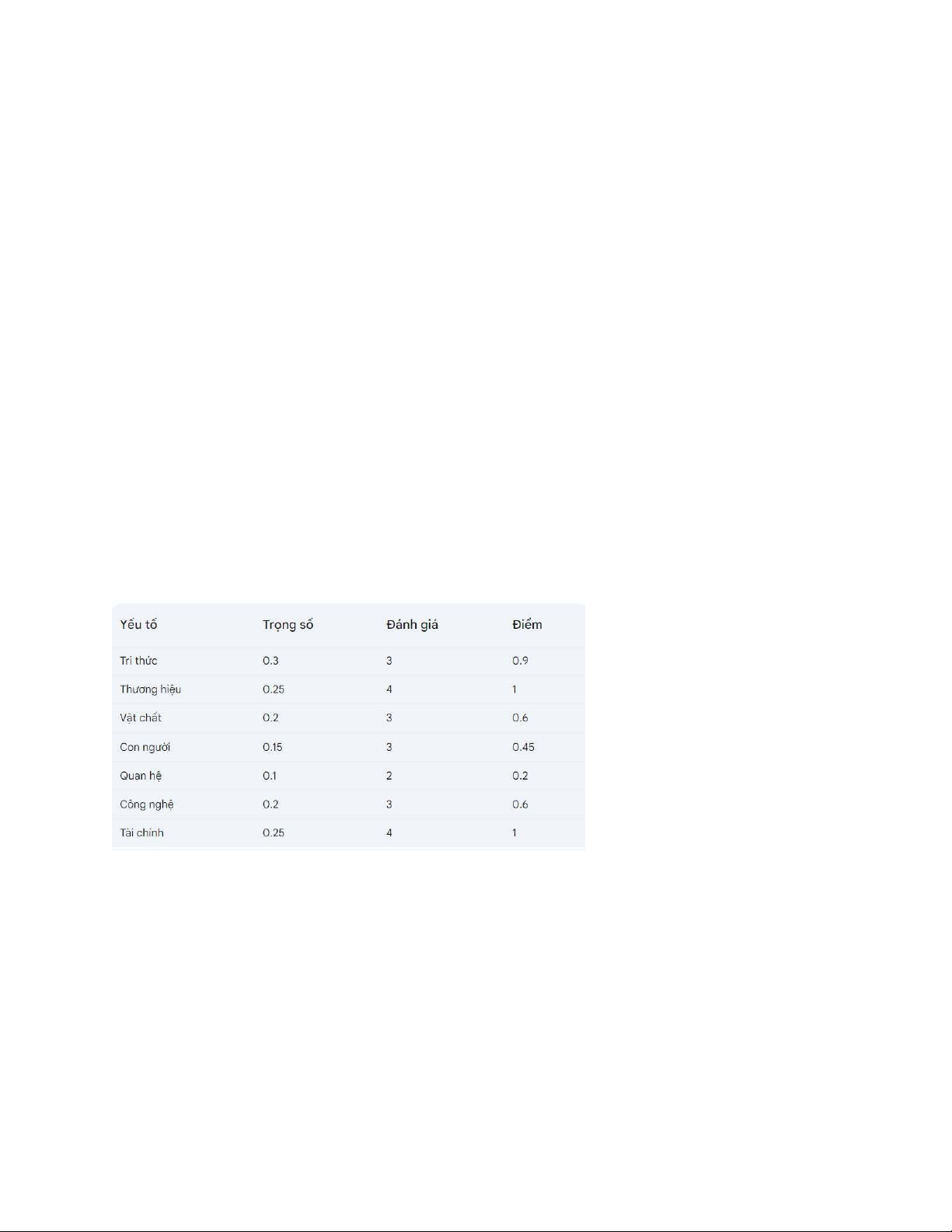- Bước 4: Nhân mức quan trọng của mối yếu tố với điểm xếp loại của nó nhằm xác định