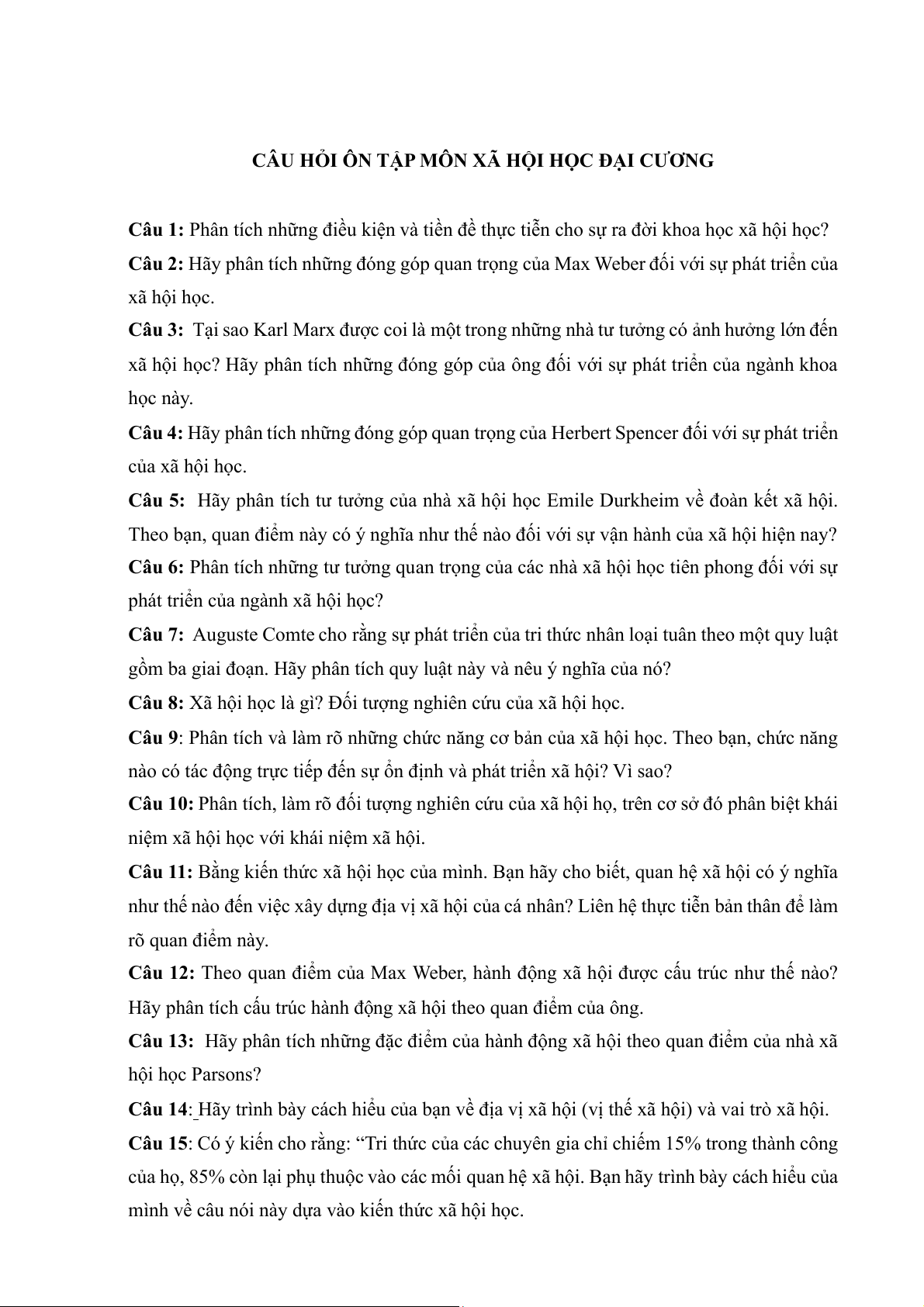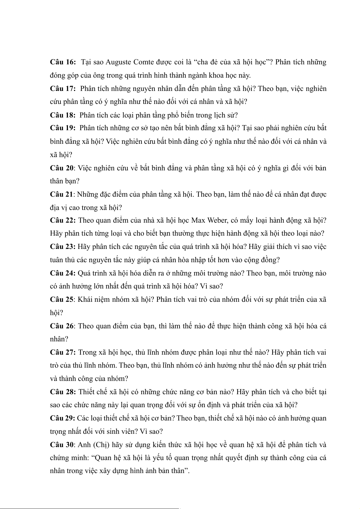 CÂU HỎI ÔN TẬP MÔN XÃ HỘI Ọ H C ĐẠI CƯƠNG Câu 1: Phân tích n ữ