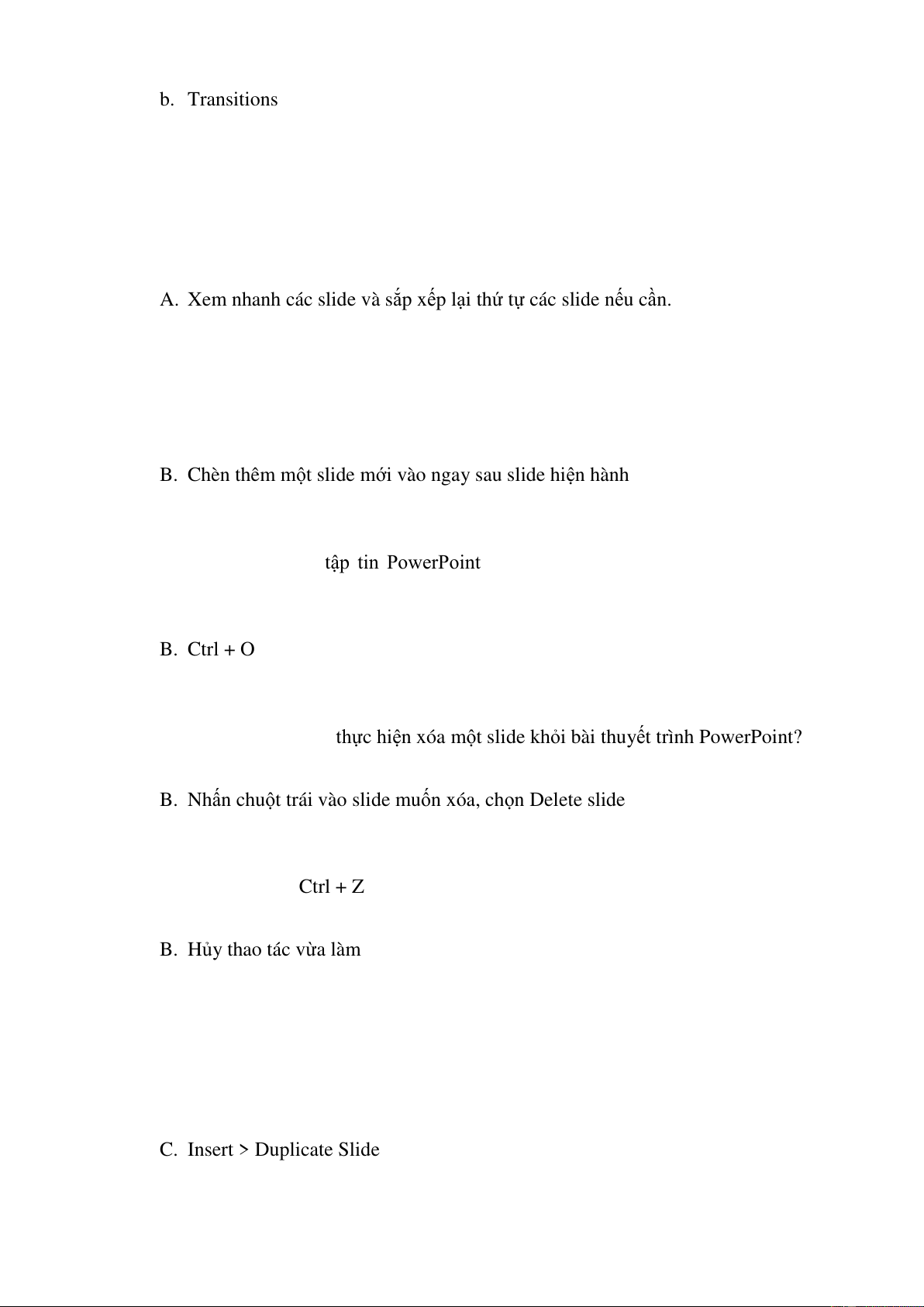 D. Không có chức năng ẩn Slide (Hide Slide) đã tạo ra 3.2.4. Câu hỏi ôn tập