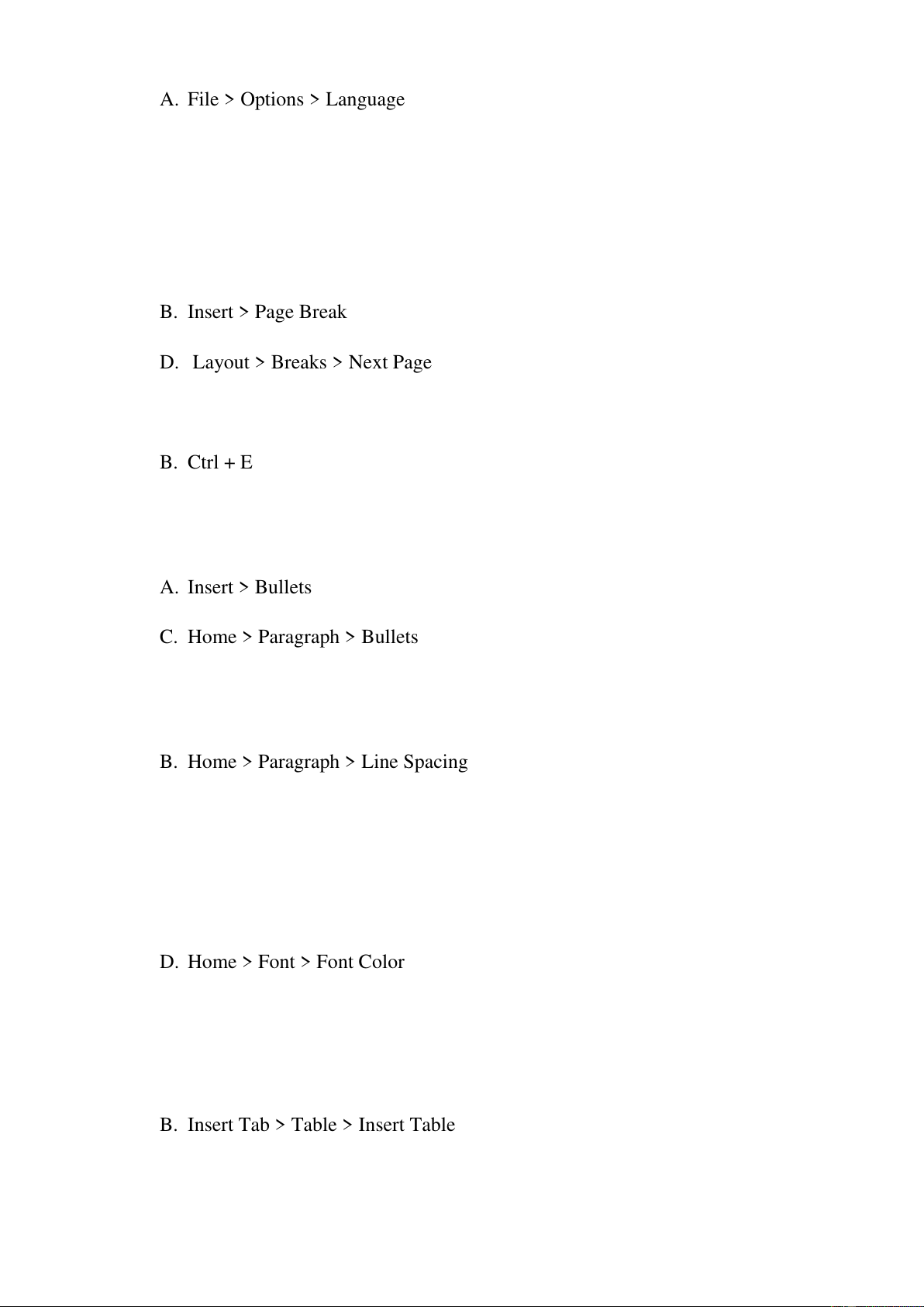 A. File > Insert > Page Break B. Insert > Page Break