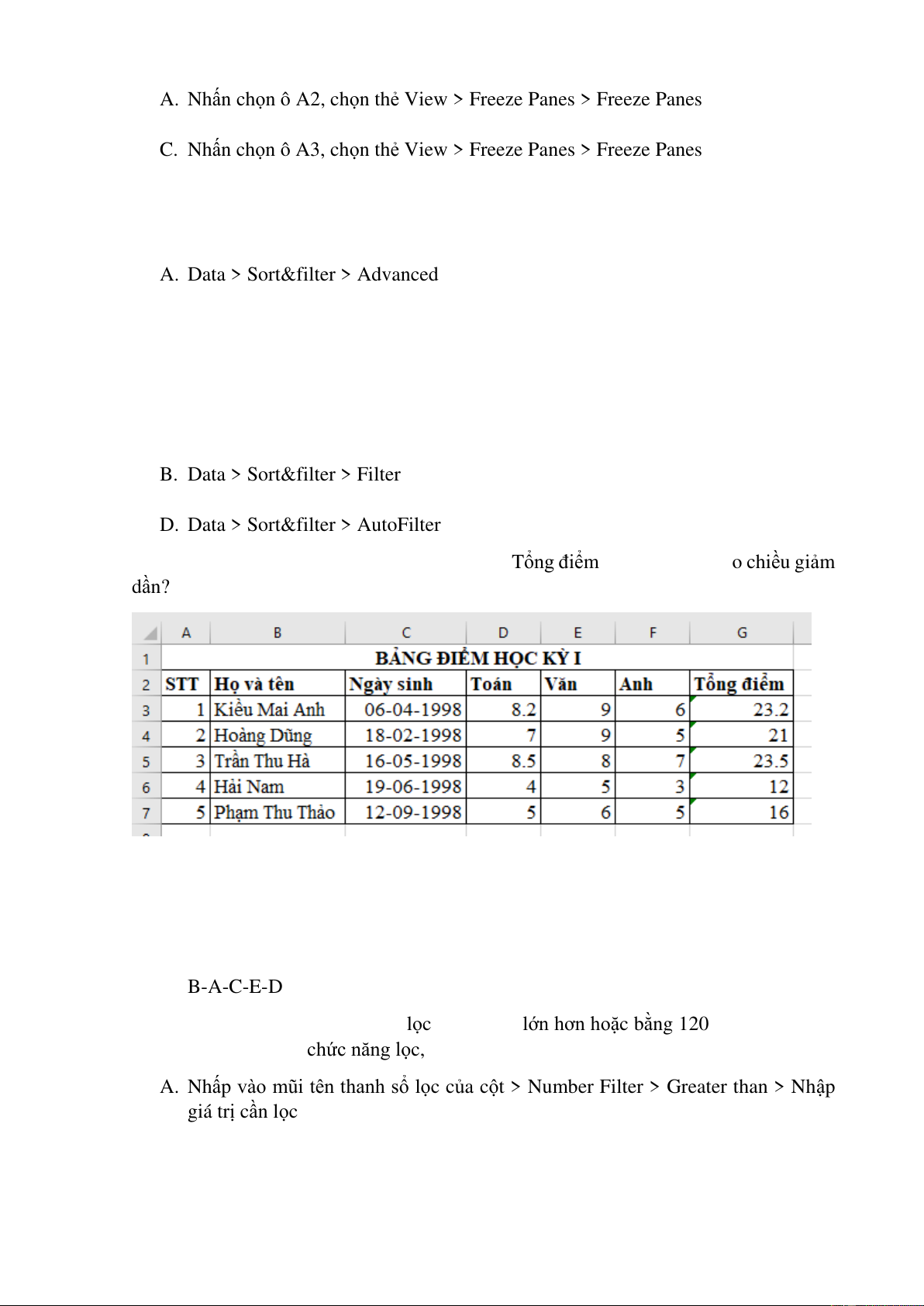 dụng các lệnh trong thẻ nào? a. Insert b. View c. Page layout d. Maillings
