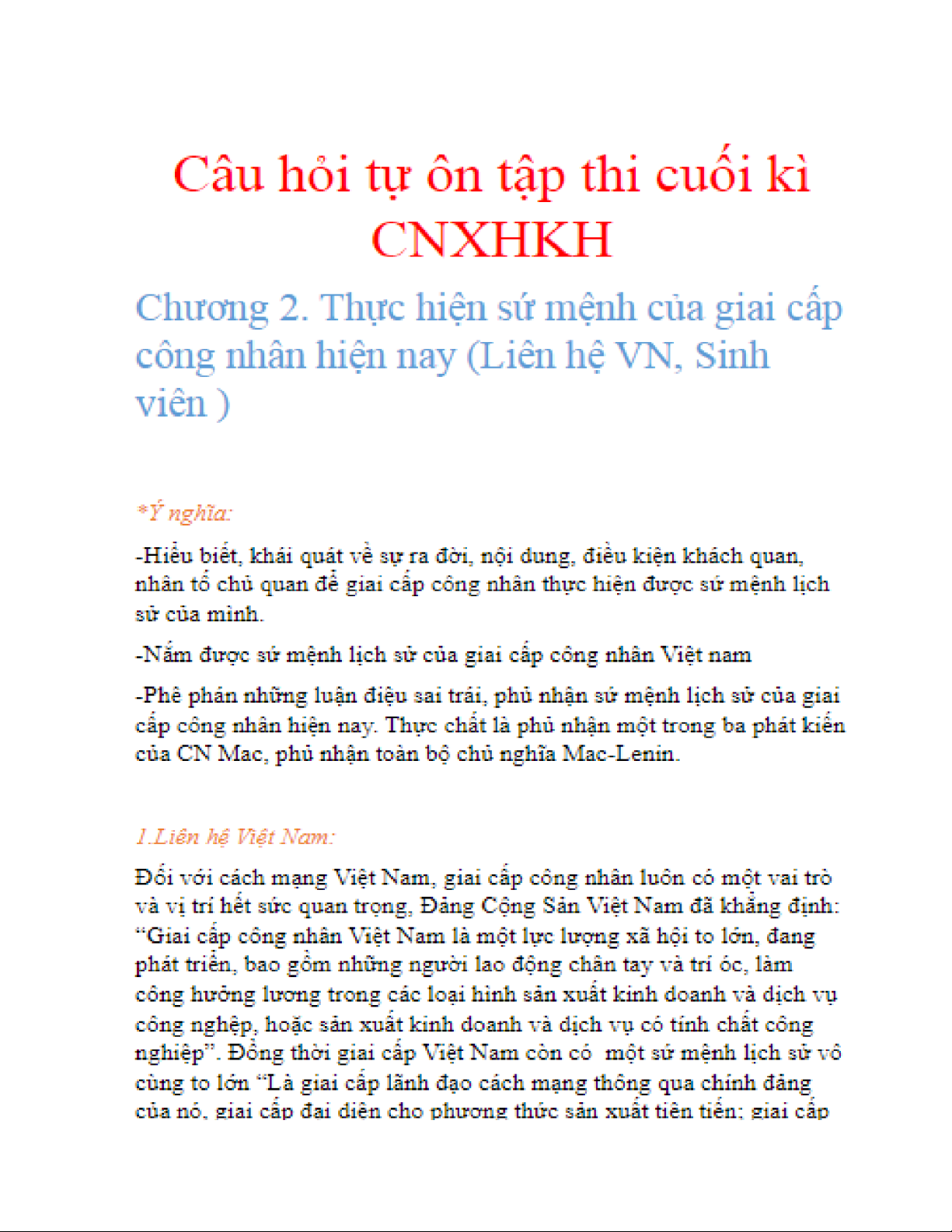 Câu Hỏi Ôn Tập Thi Cuối Kỳ Môn Chủ nghĩa xã hội khoa học | Đại học Sư phạm Kỹ thuật Nam Định