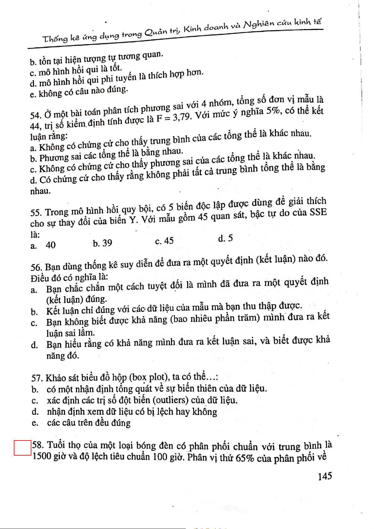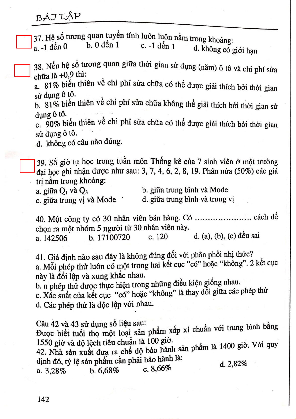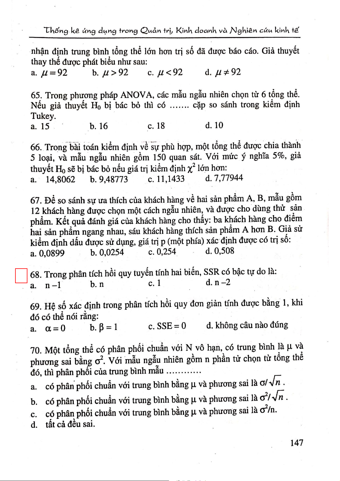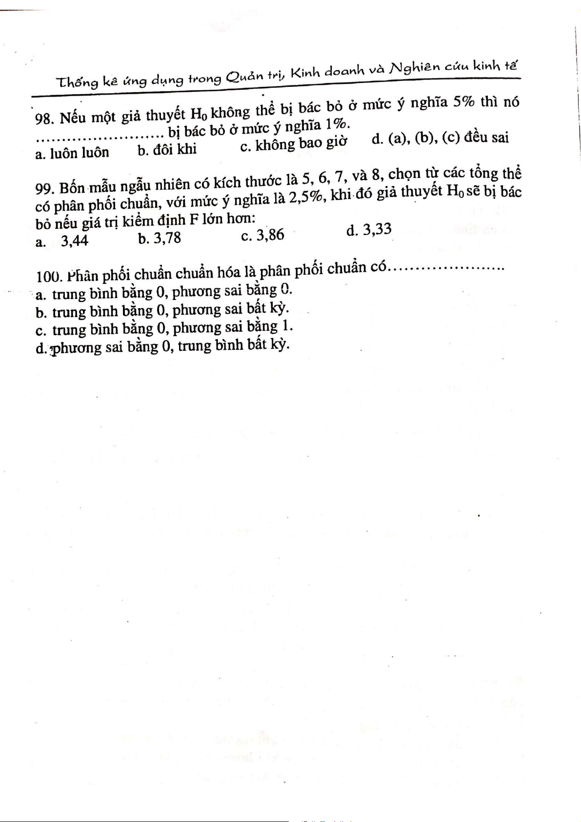Câu hỏi ôn tập trắc nghiệm môn Thống kê ứng dụng | Đại học Công nghiệp Thực phẩm Thành phố Hồ Chí Minh