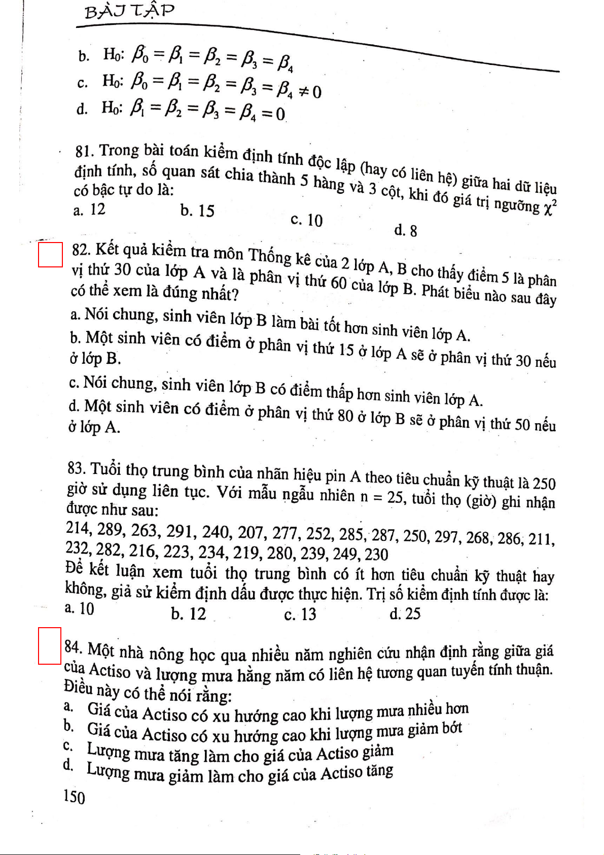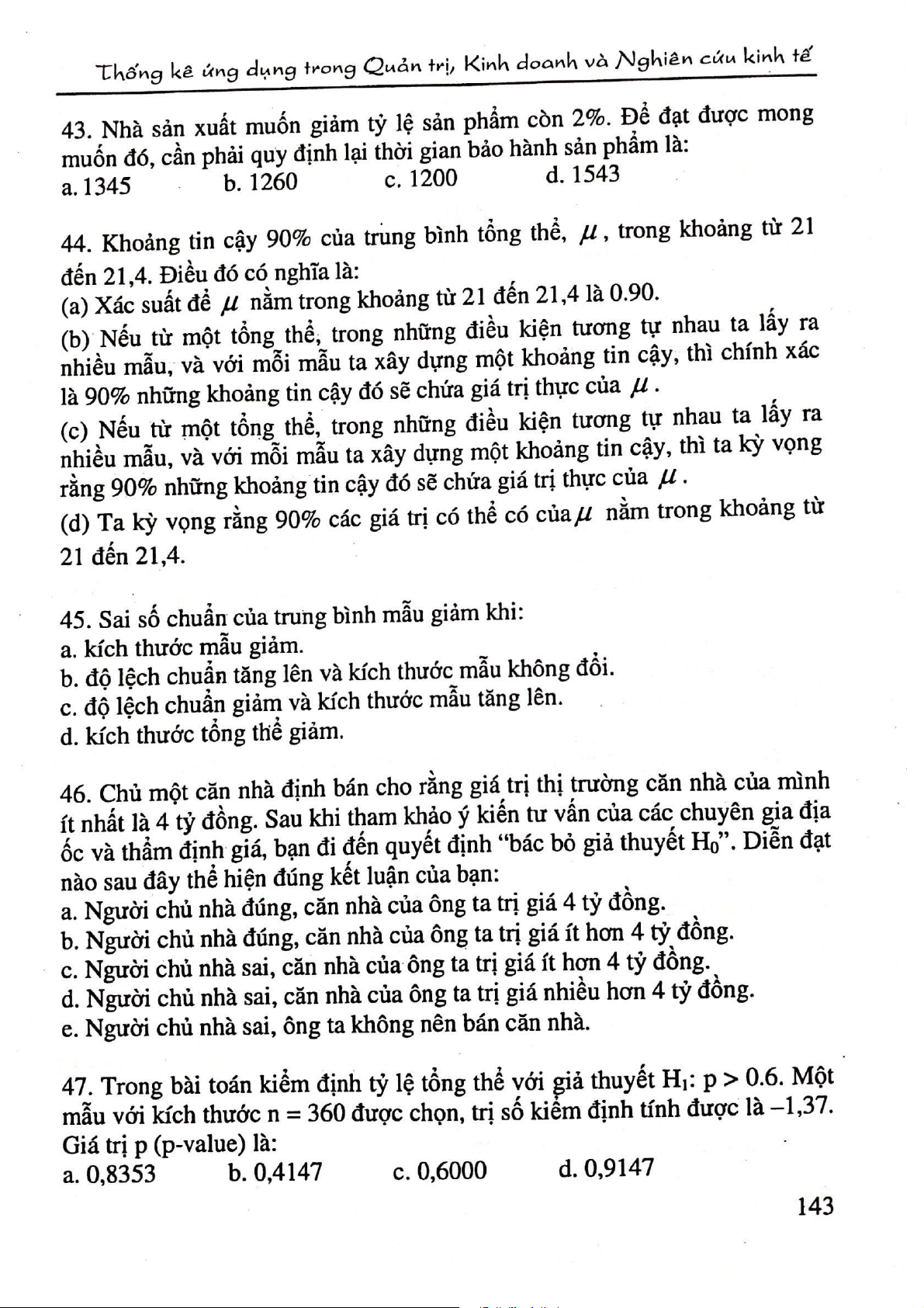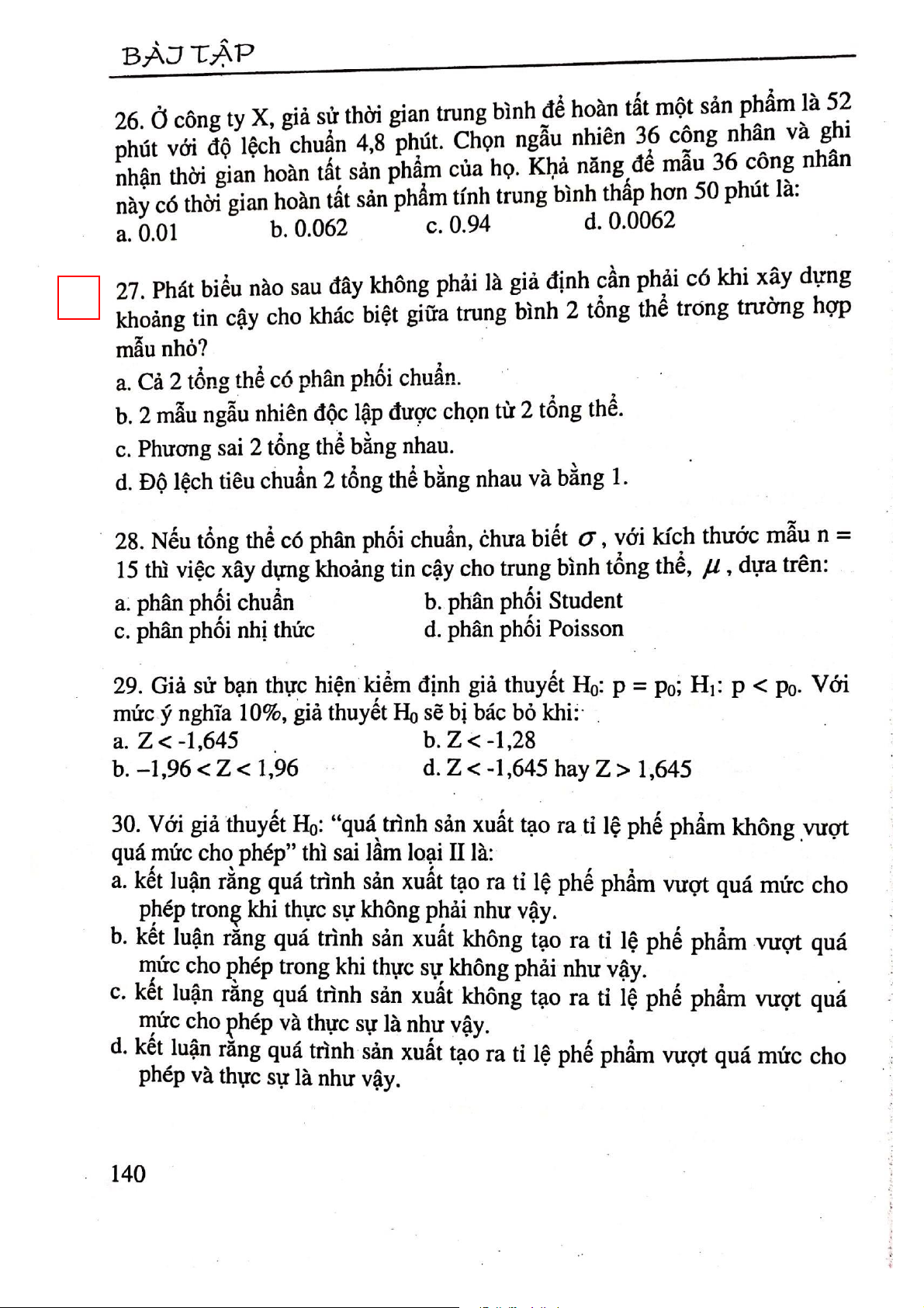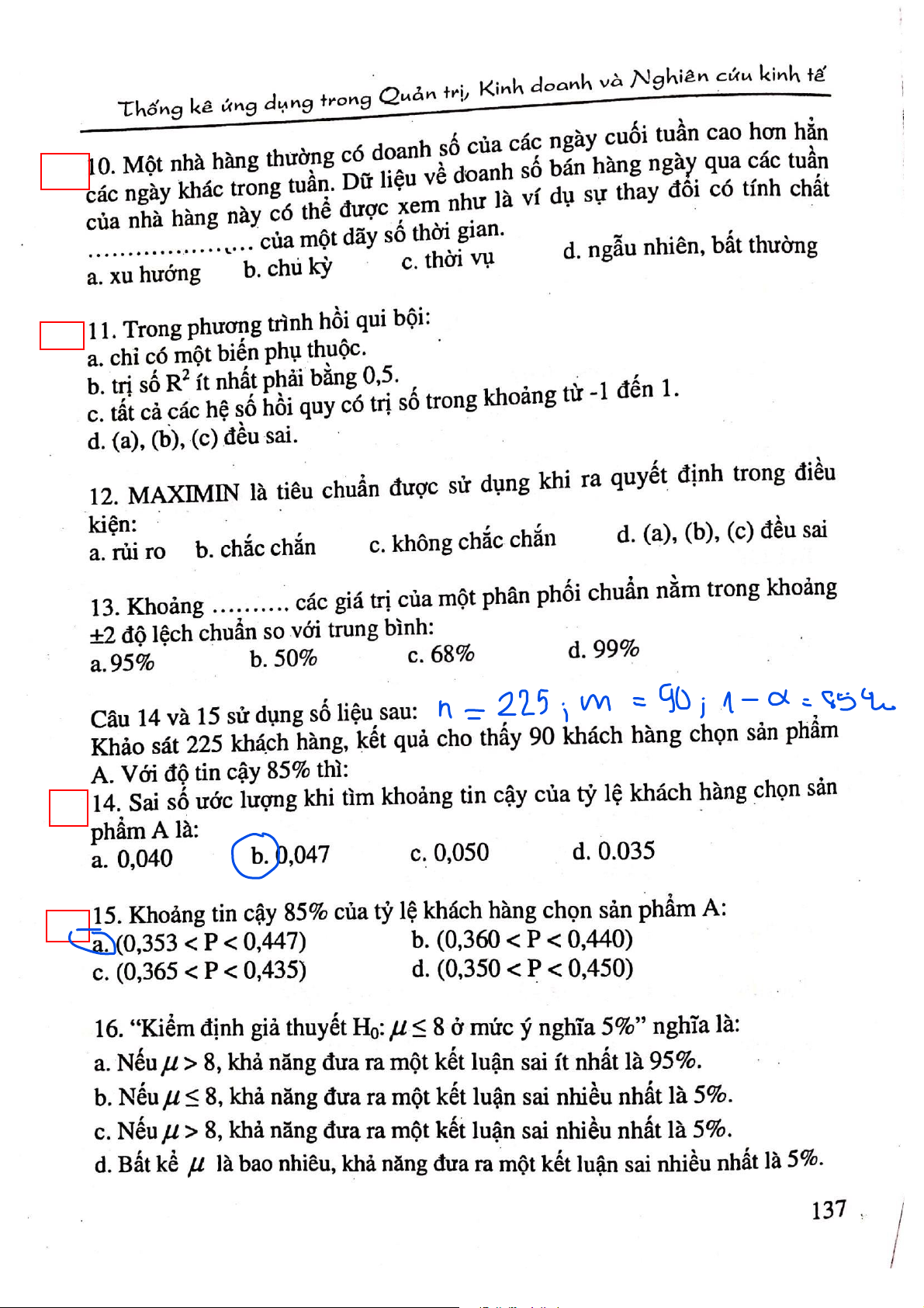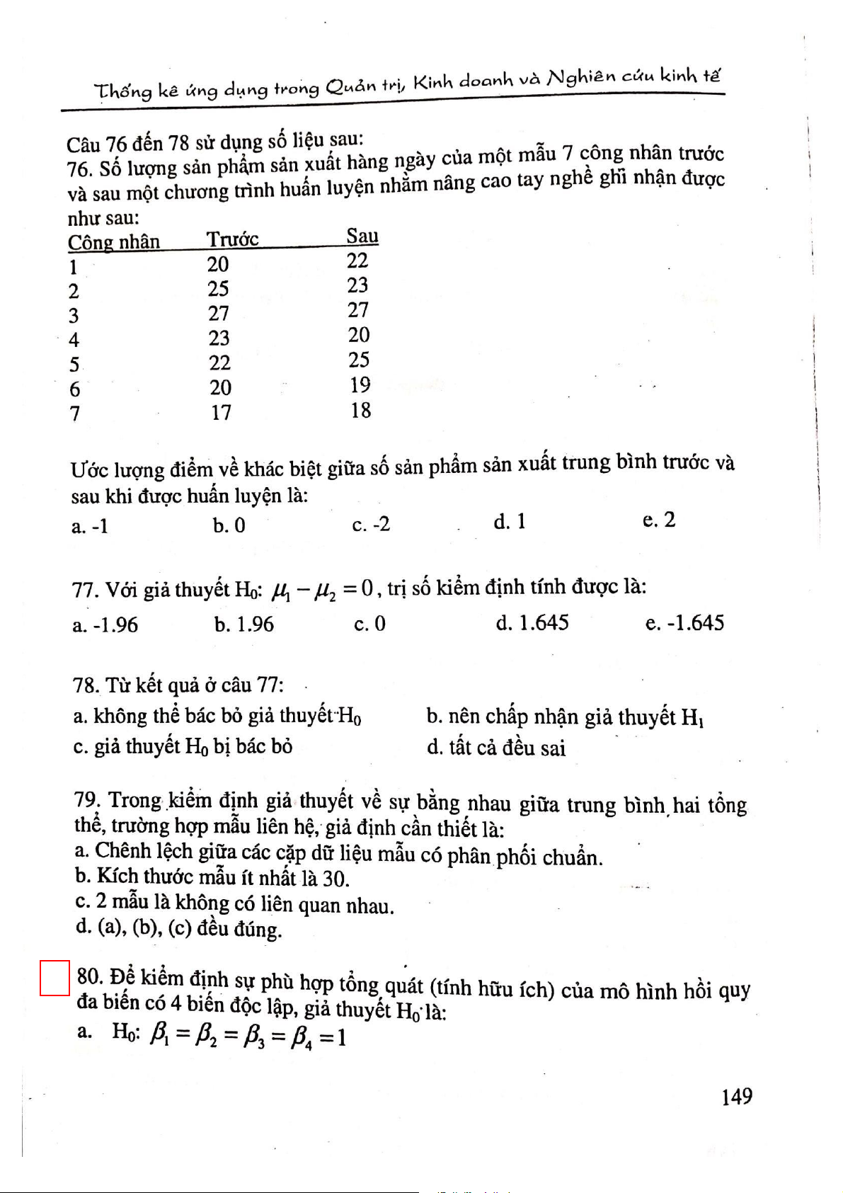 Câu hỏi ôn tập trắc nghiệm môn Thống kê ứng dụng | Đại học Công nghiệp Thực phẩm Thành phố Hồ Chí Minh