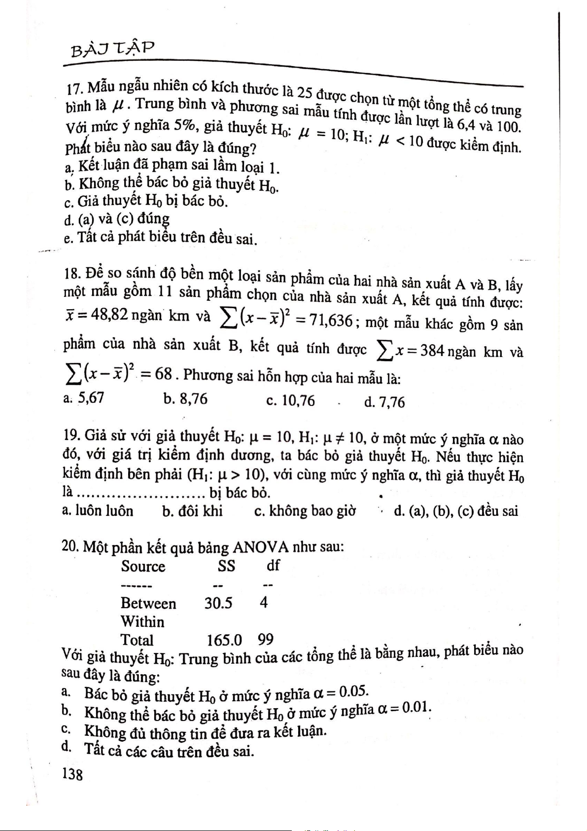 Môn: Thống kê ứng dụng( AS) 10 tài liệu