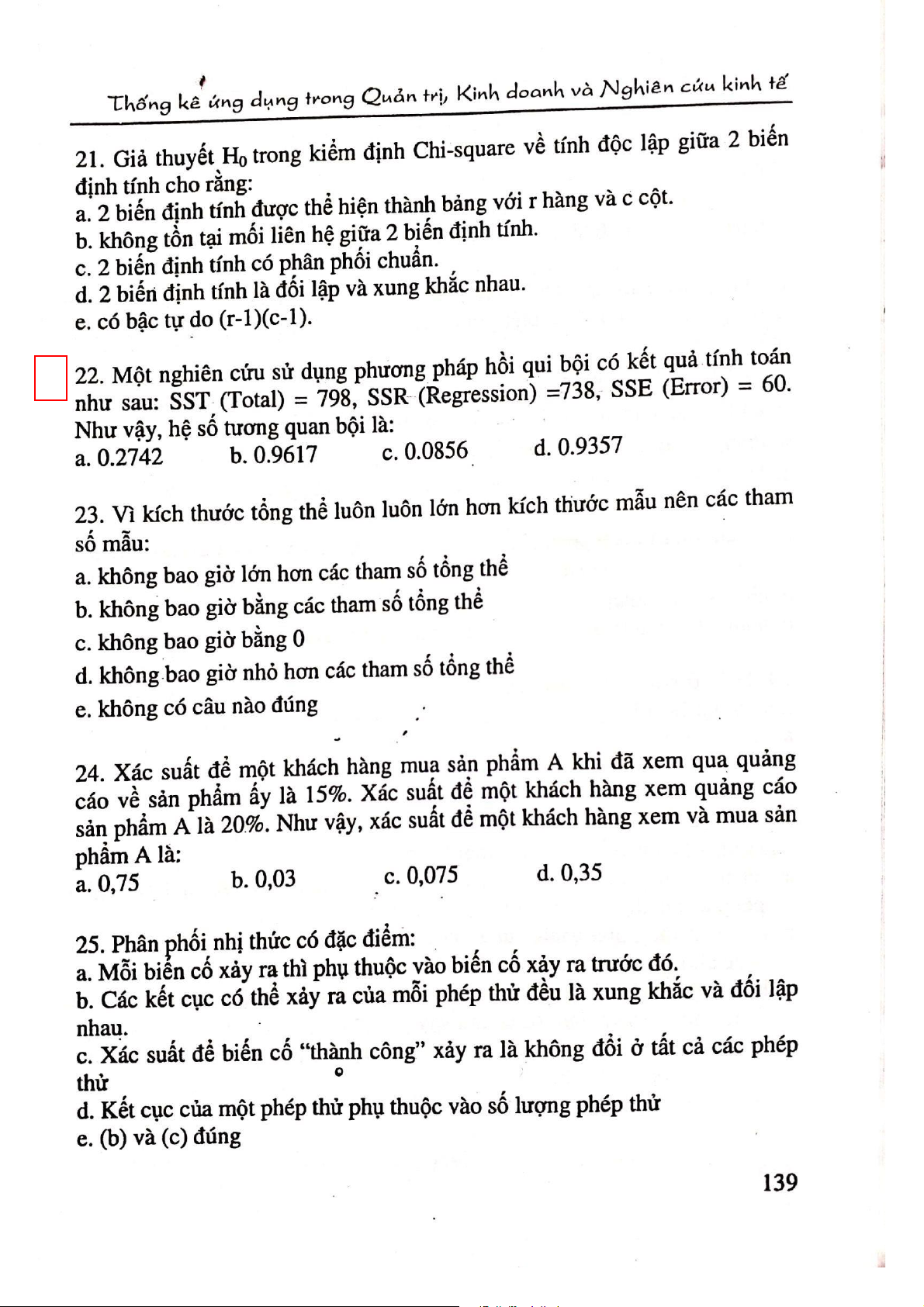 Câu hỏi ôn tập trắc nghiệm môn Thống kê ứng dụng. Tài liệu được sưu tầm gồm 19 trang, giúp các bạn nắm vững kiến thức, rèn luyện kỹ năng và đạt được kết quả tốt trong học tập. Mời các bạn đón xem!