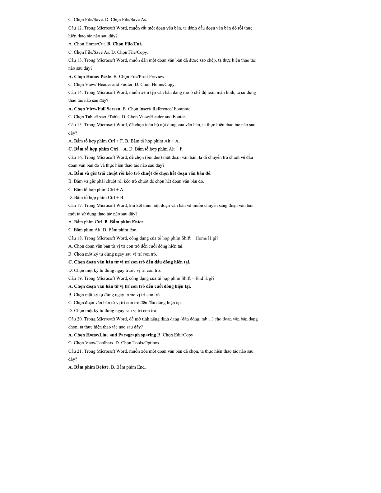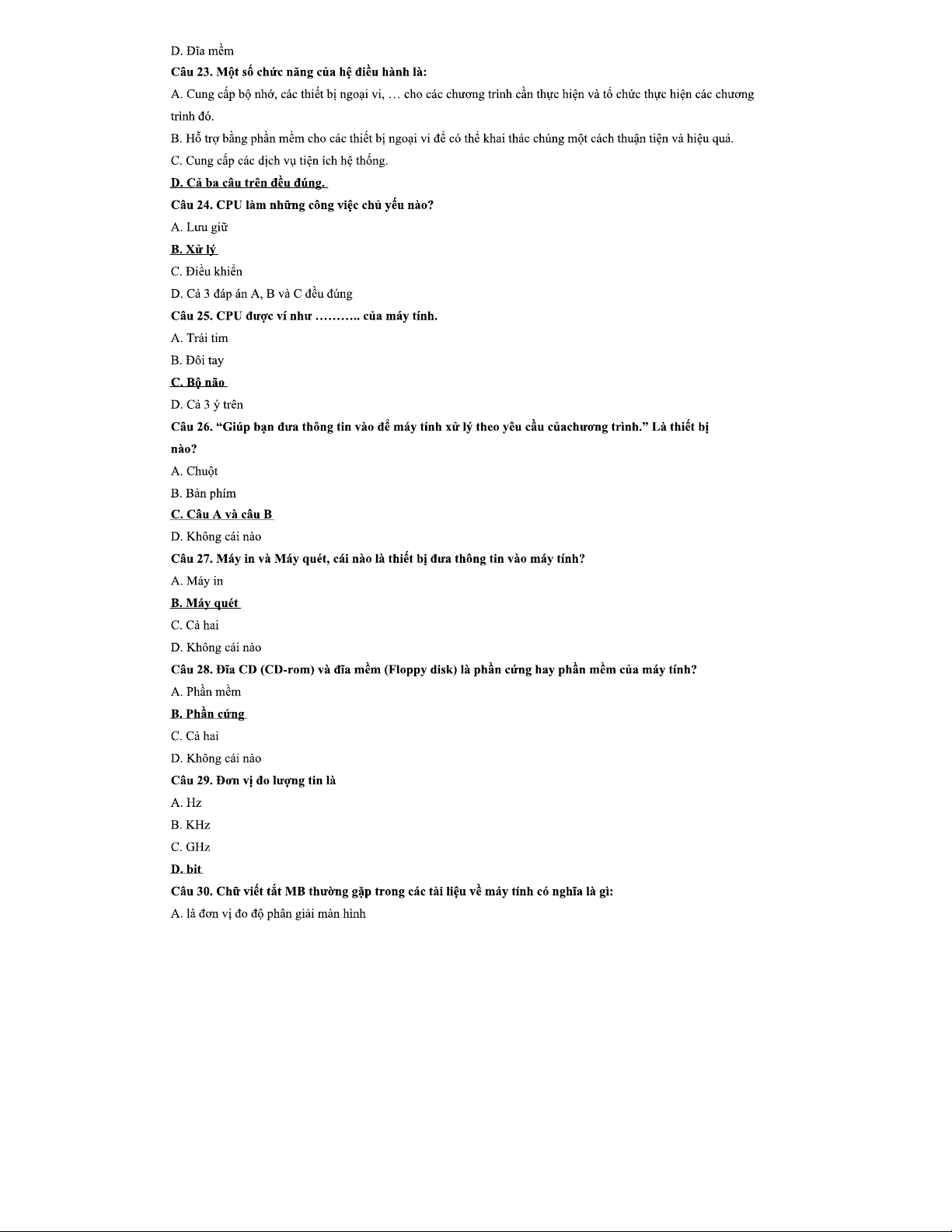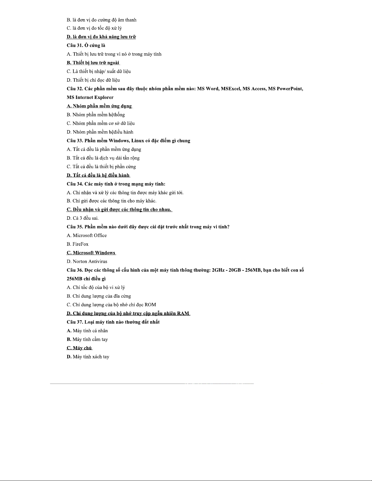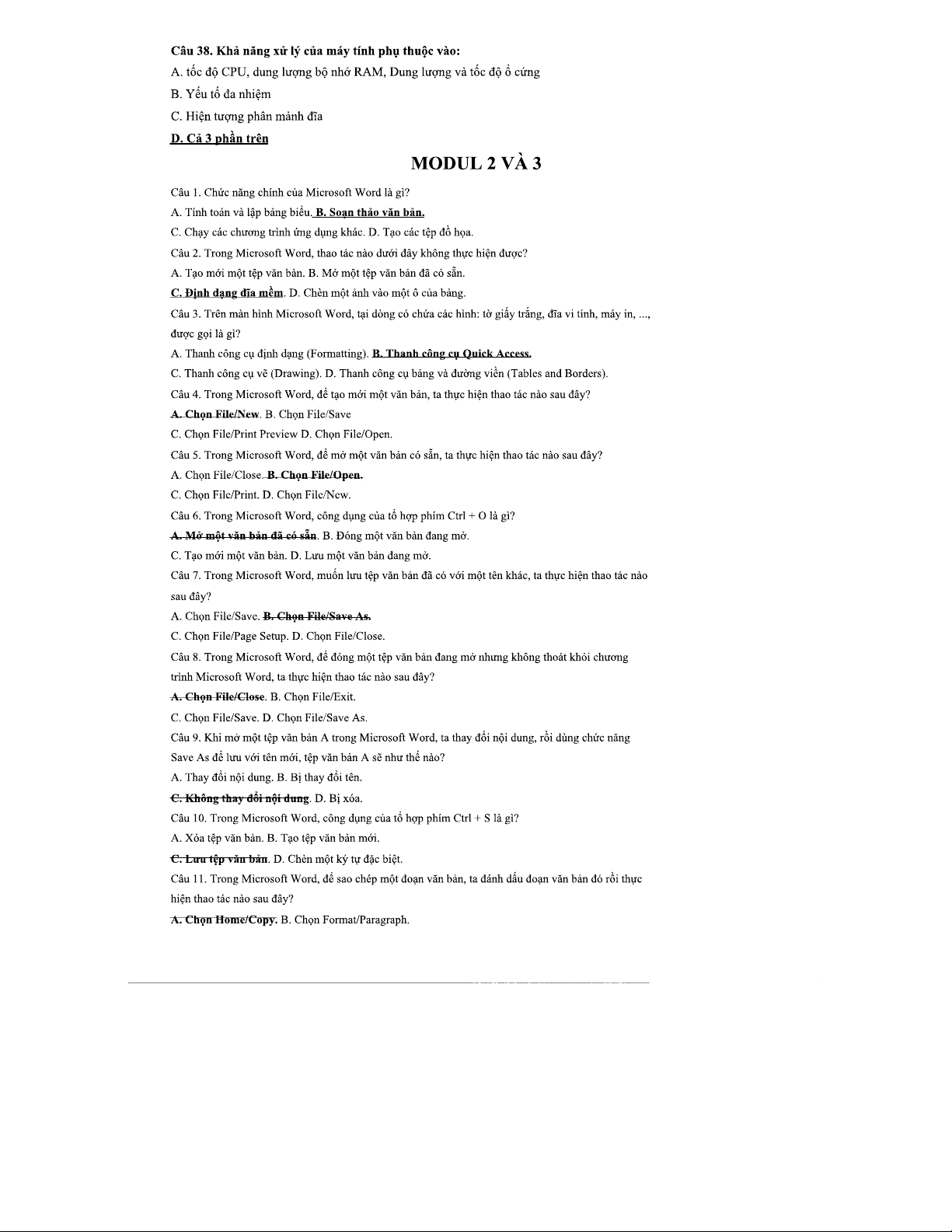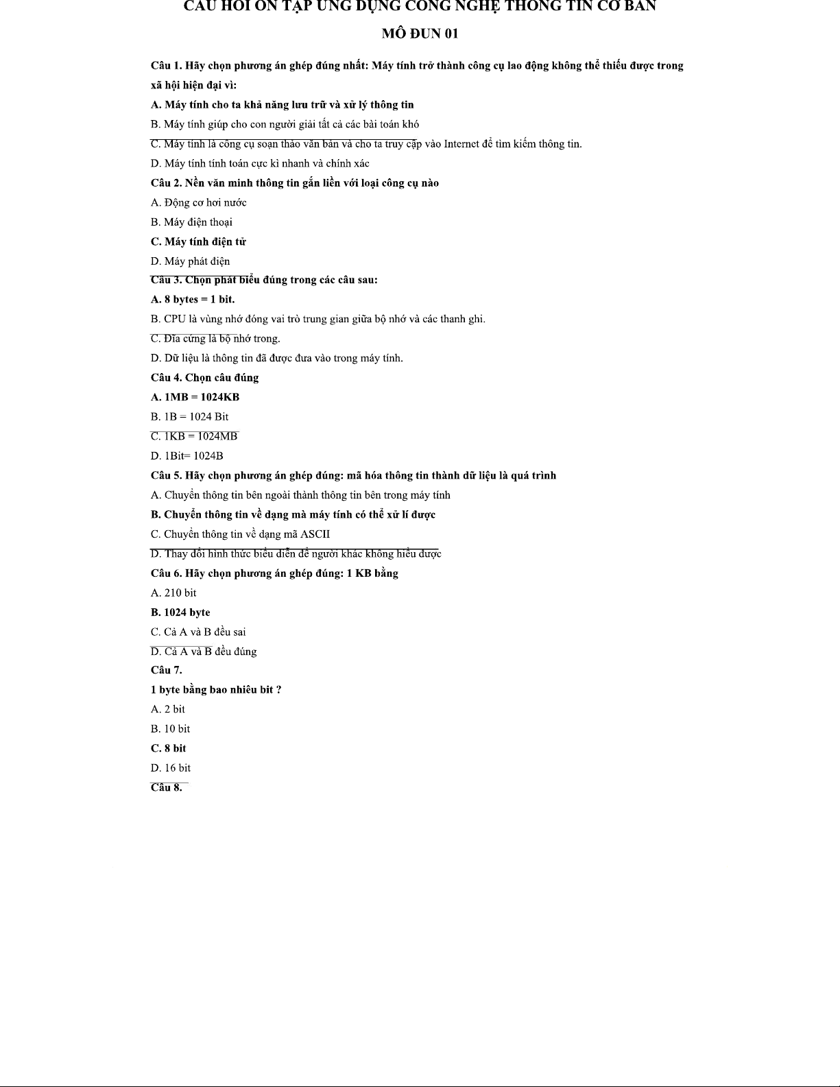 Câu Hỏi Ôn Tập: Ứng Dụng Công Nghệ Thông Tin Cơ Bản - Mô Đun 01