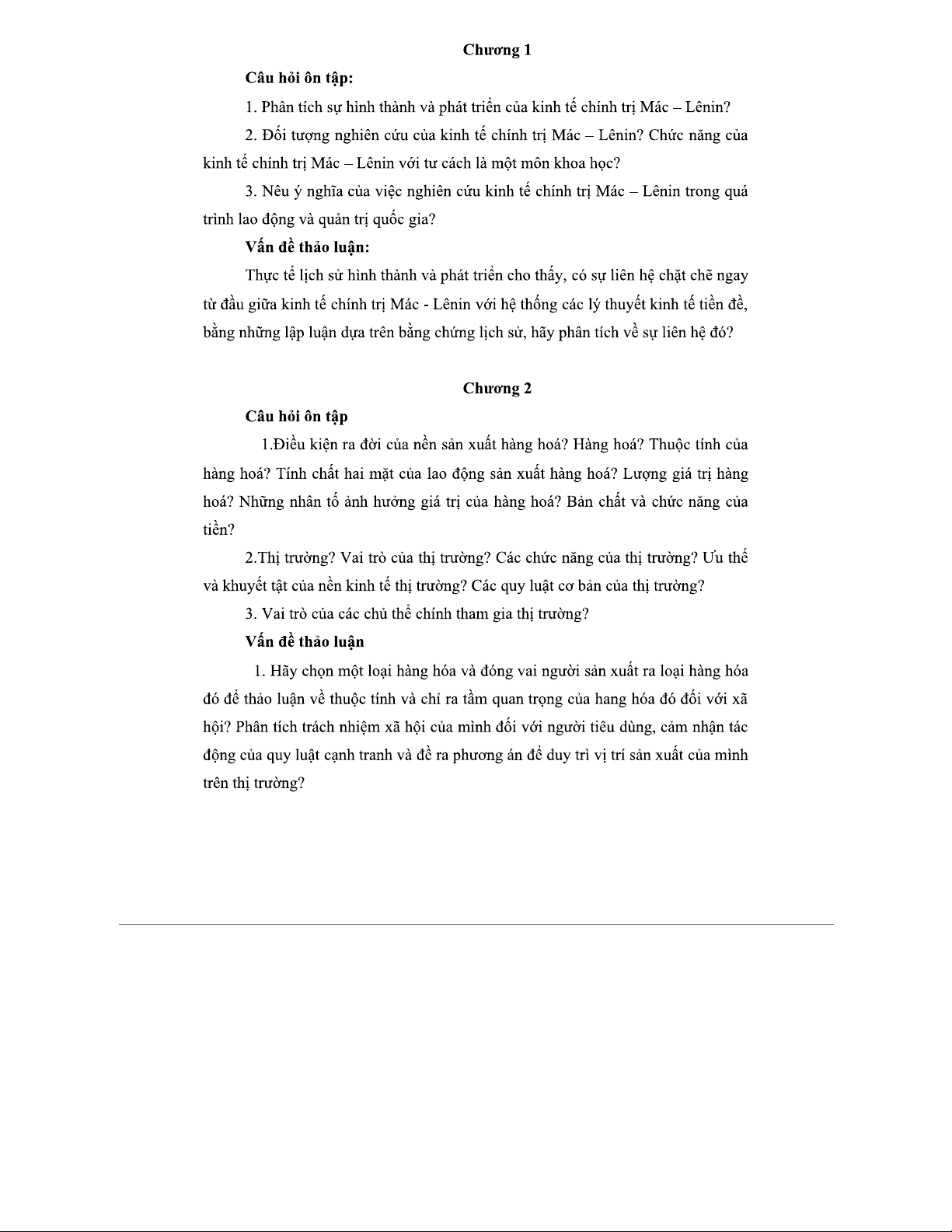 Câu hỏi ôn tập và thảo luận KTCT - Kinh Tế Chính Trị Mác-Lênin