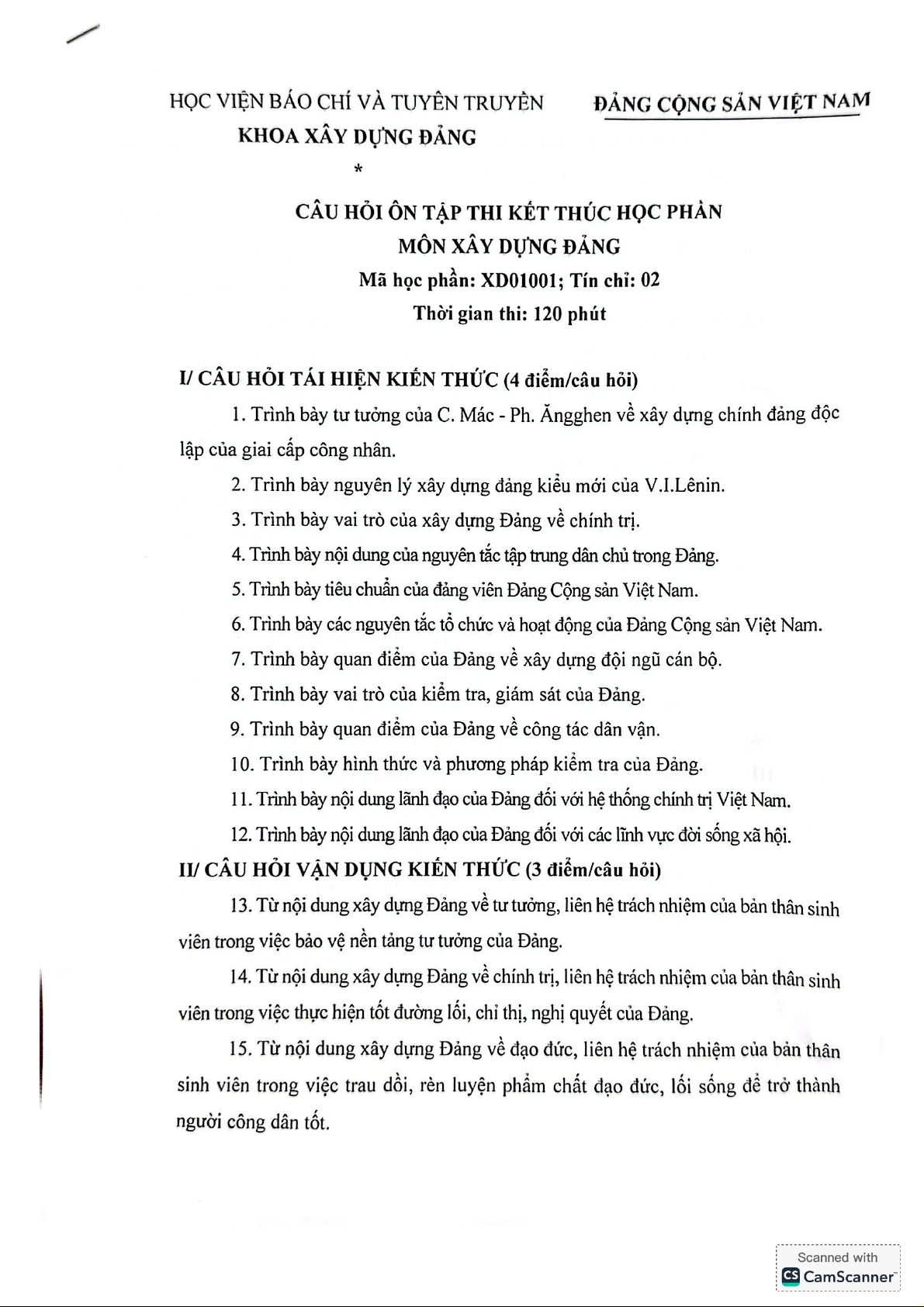 Câu hỏi ôn tập xây dựng đảng | Học viện Báo chí và Tuyên truyền
