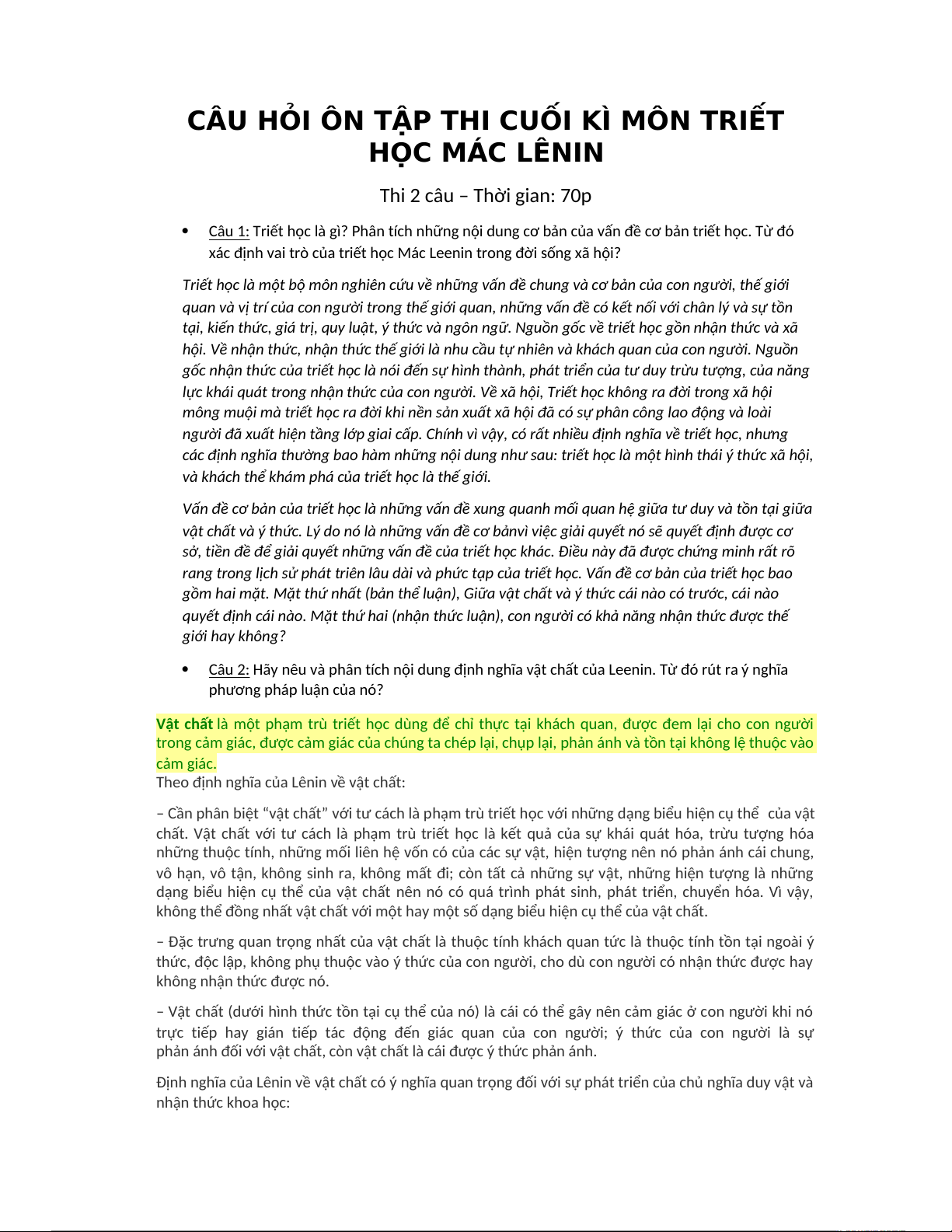 CÂU HỎI ÔN TẬP THI CUỐI KÌ MÔN TRIẾT HỌC MÁC LÊNIN
