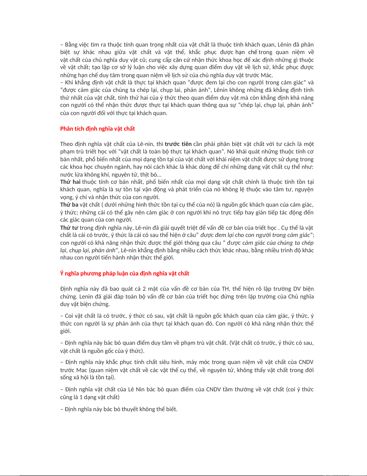 – Bằng việc tìm ra thuộc tính quan trọng nhất của vật chất là thuộc tính khách quan, Lênin đã phân