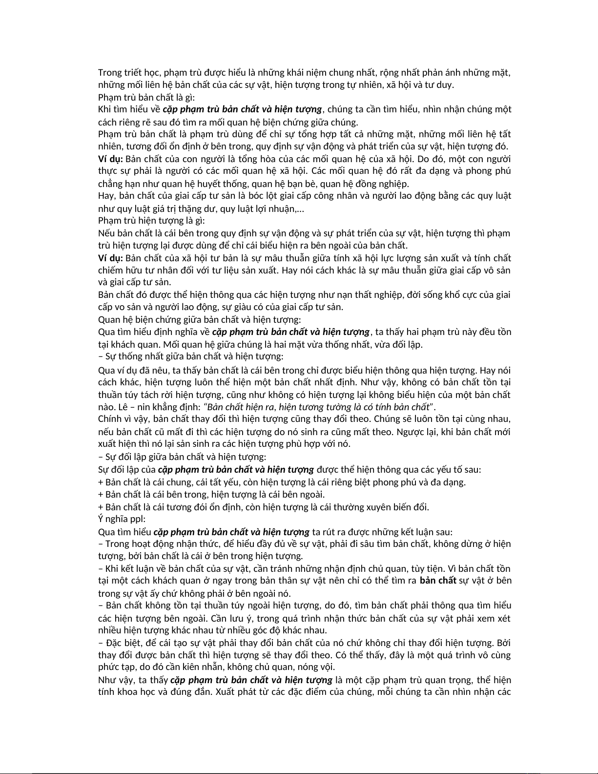chất với tư cách là phạm trù triết học, khoa học chuyên ngành, từ đó khắc phục được