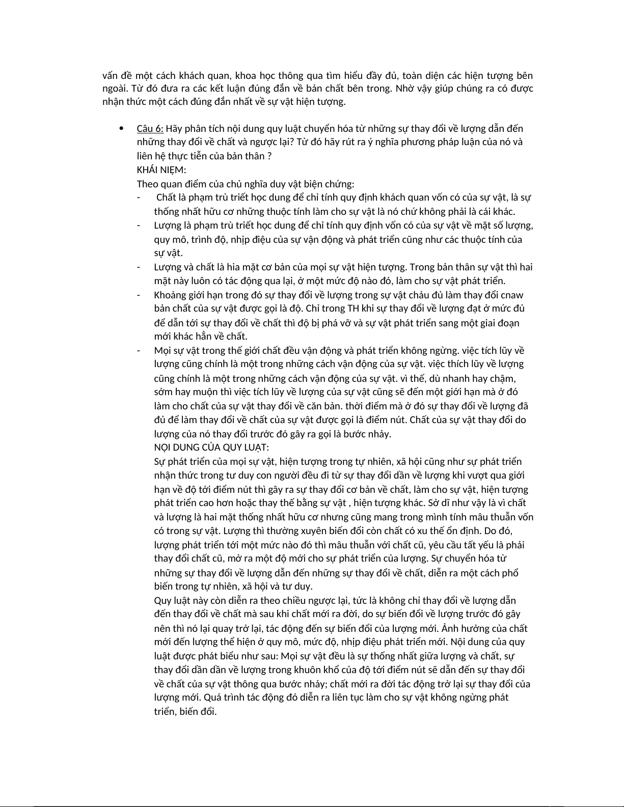 tiến độ chính là việc áp dụng đúng đắn quy luật lượng chất trong tư duy con người. Câu 7: