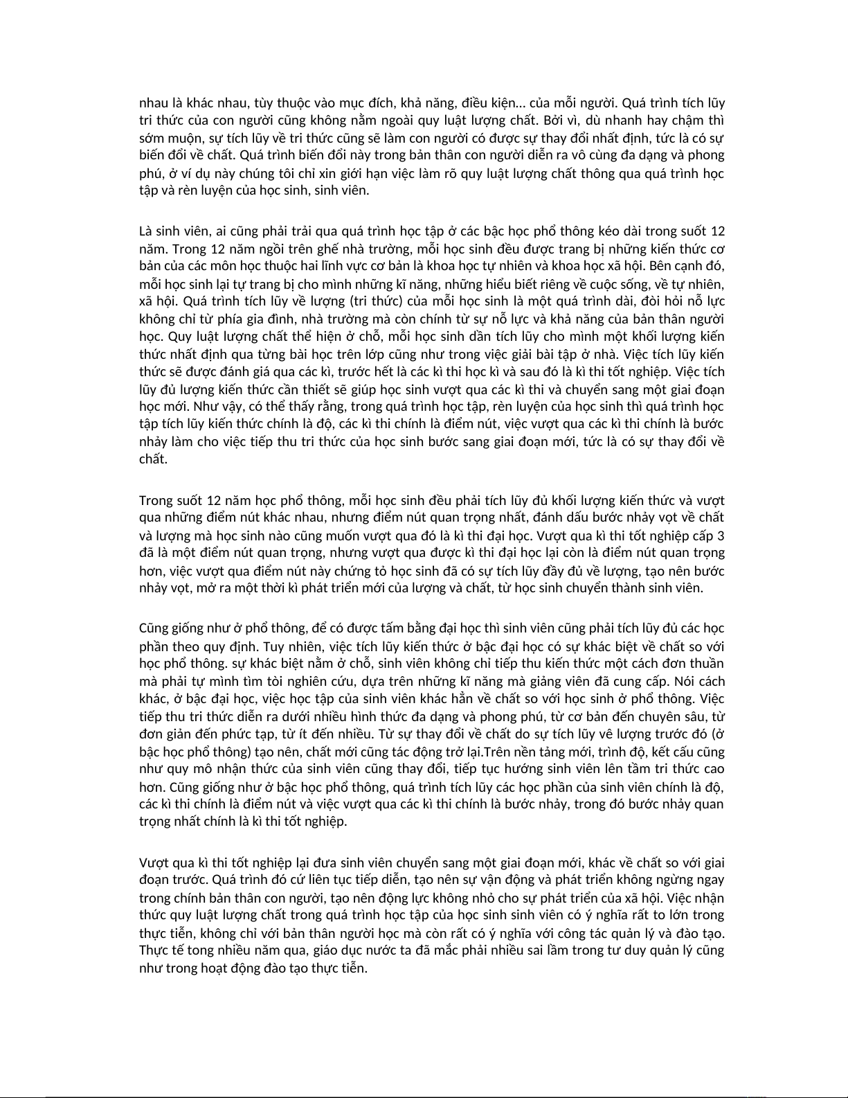 thức quy luật lượng chất trong quá trình học tập của học sinh sinh viên có ý nghĩa rất to lớn trong