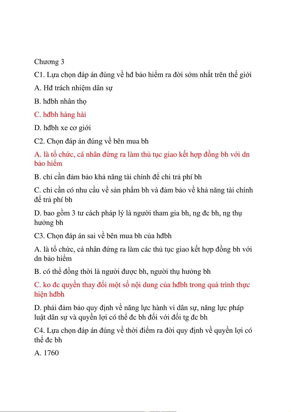 A. Hđ trách nhiệm dân sự B. hđbh nhân thọ C. hđbh hàng hàỉ D. hđbh xe cơ giới C2. Ch bên m ọn đáp án đúng về ua bh