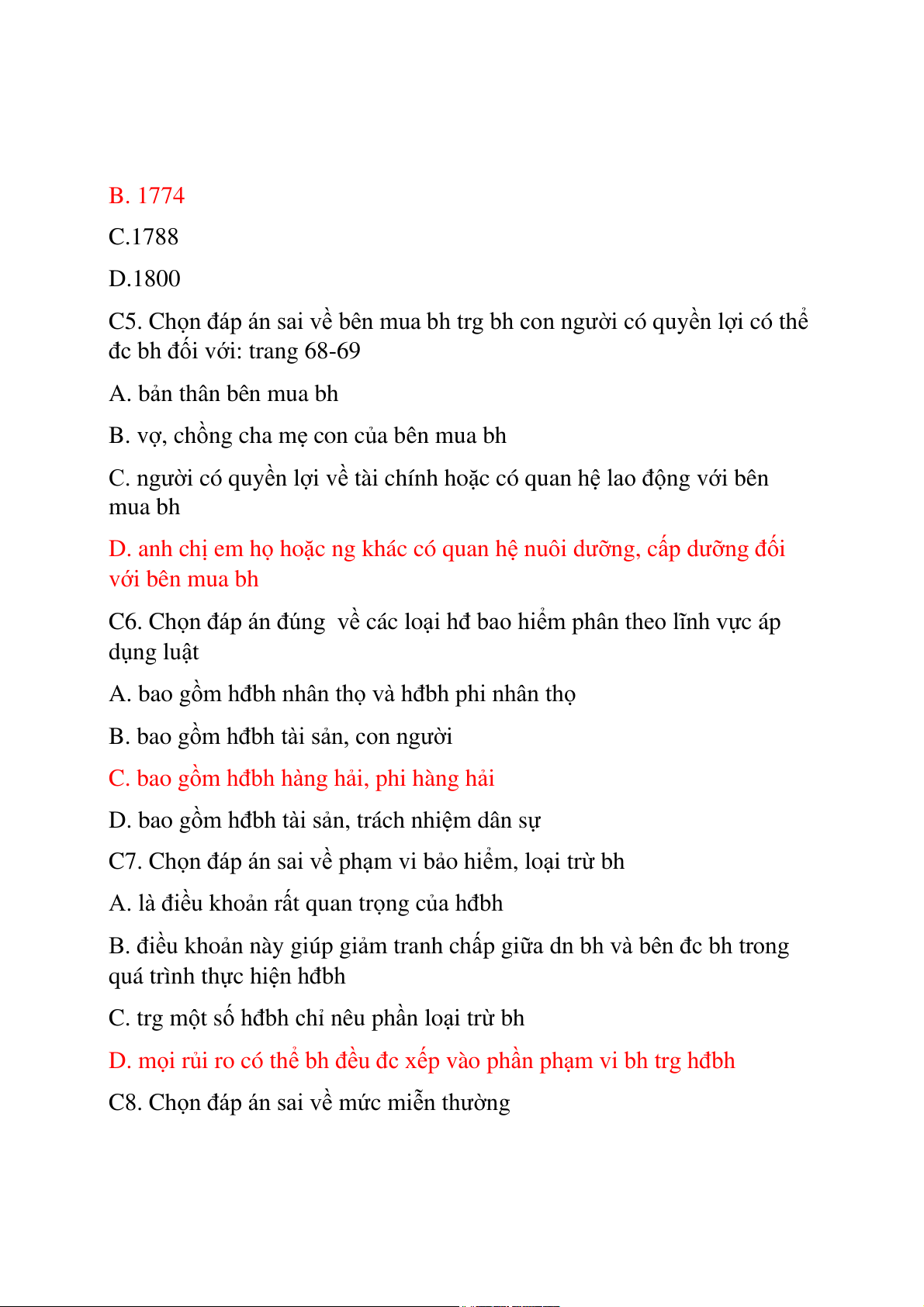 C. người có quyền lợi về tài chính hoặc có quan hệ lao độ ng với bên mua bh D. anh chị em h ho ọ ặc ng khác có quan h ệ nuôi dưỡng, c i ấp dưỡng đố với bên mua bh C6. Ch các l ọn đáp án đúng về o c