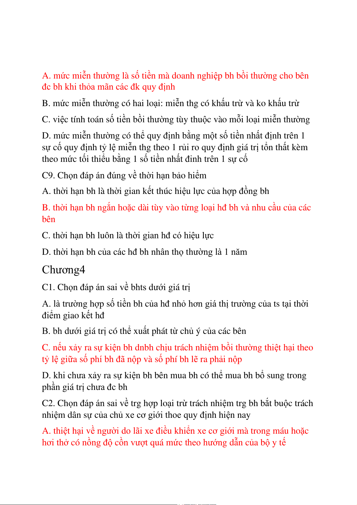 ủa các hđ bh nhân thọ t hường là 1 năm Chương4 C1. Ch ọn đáp án sai về i bhts dướ giá trị