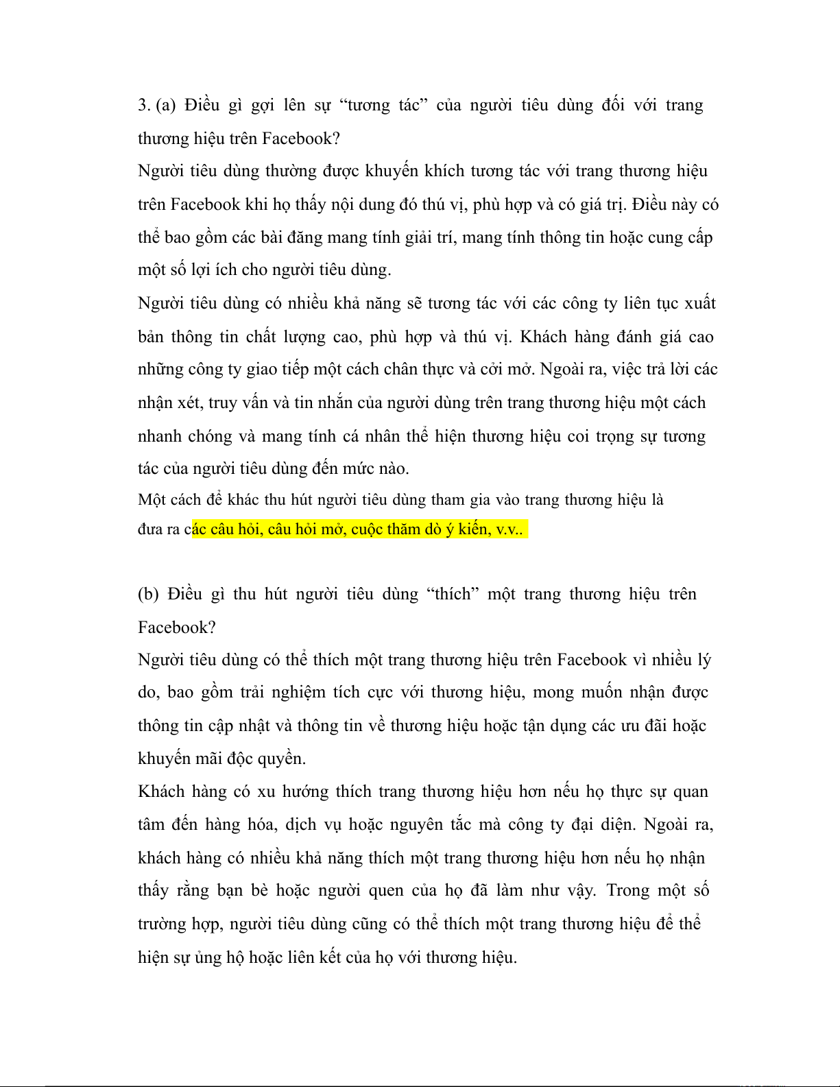 3. (a) Điều gì gợi lên sự “tương tác” của người tiêu dùng đối với trang