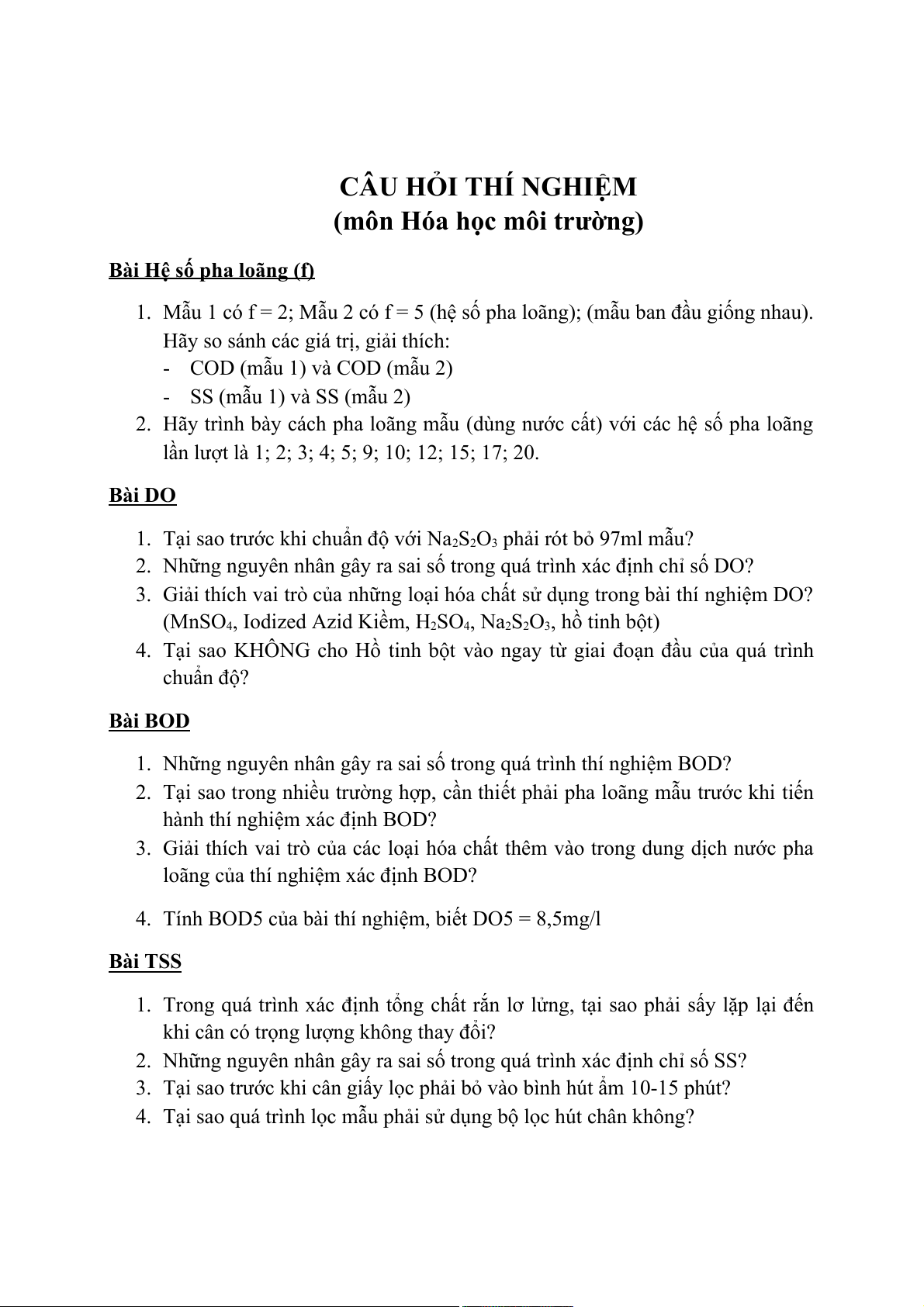1. Những nguyên nhân có thể gây ra sai số trong quá trình xác định COD?