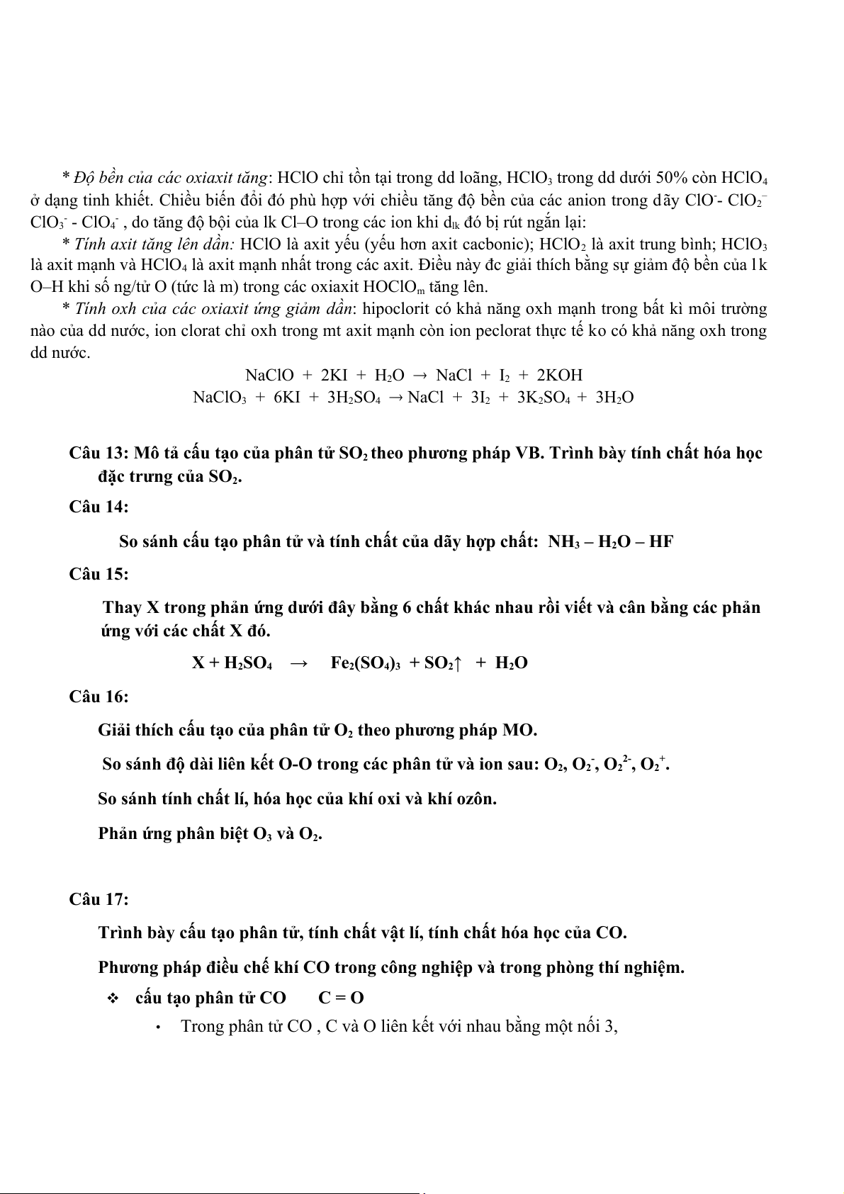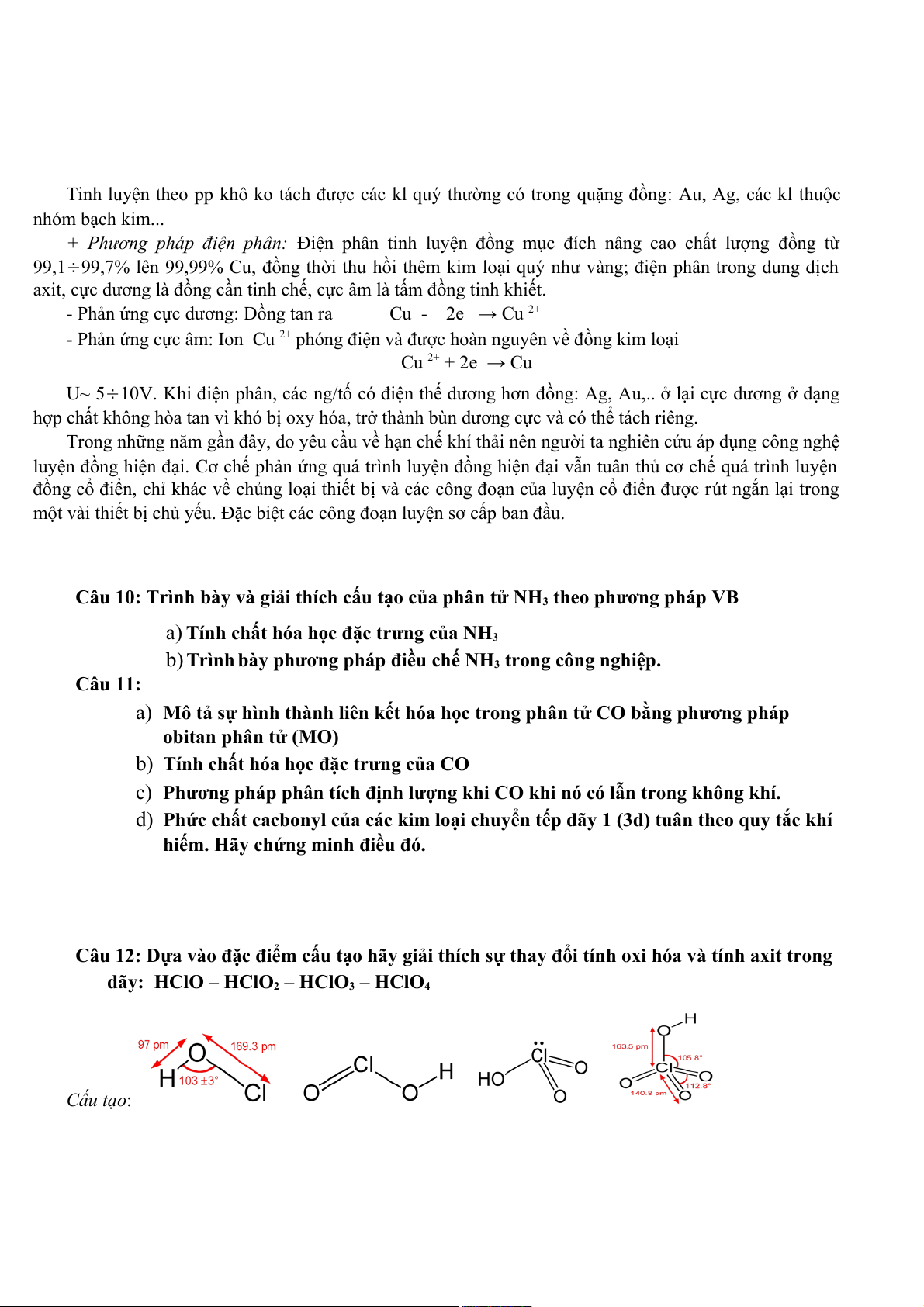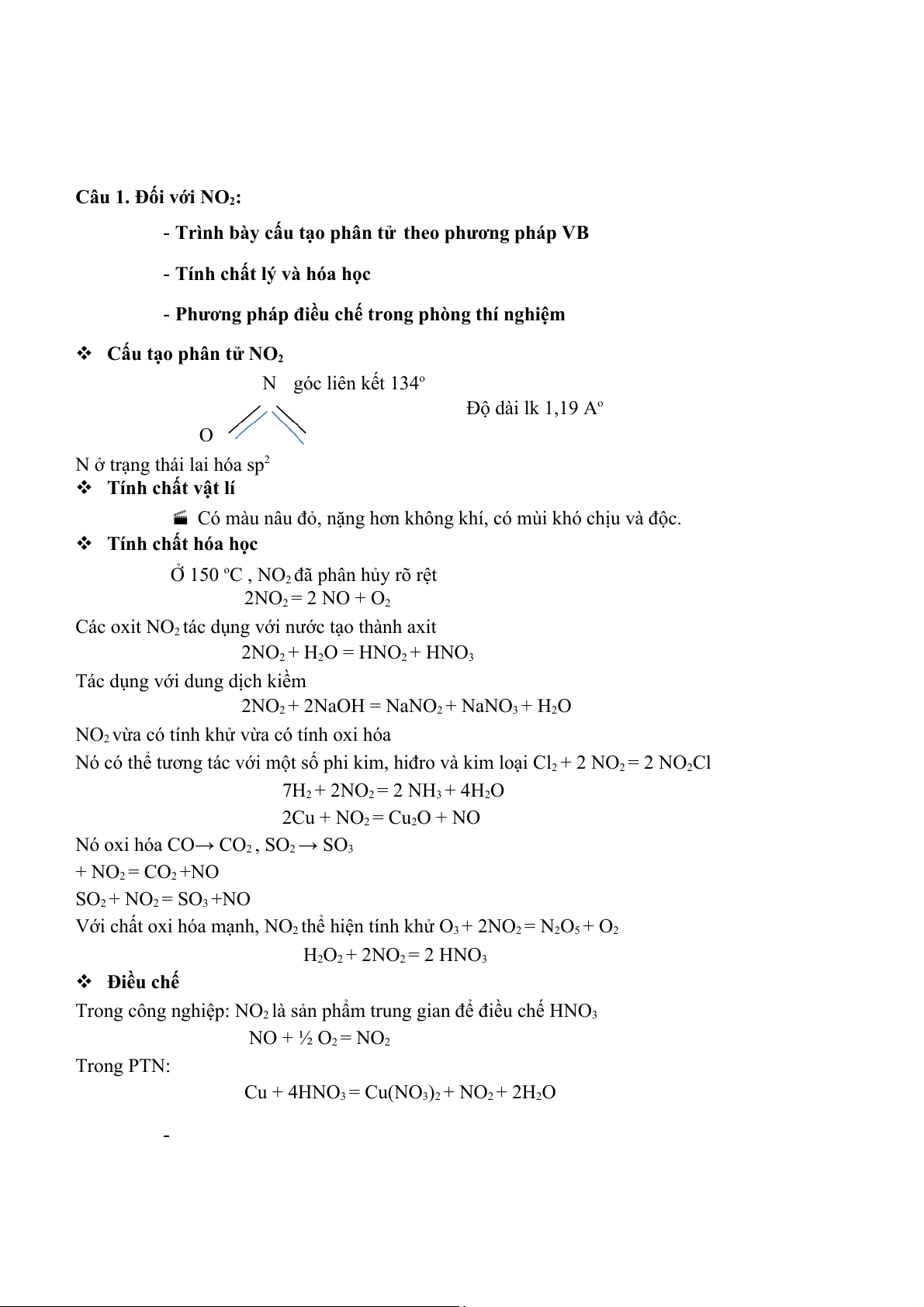 Câu 7. Trình bày cấu tạo phân tử (theo phương pháp VB), tính chất hóa học và phương