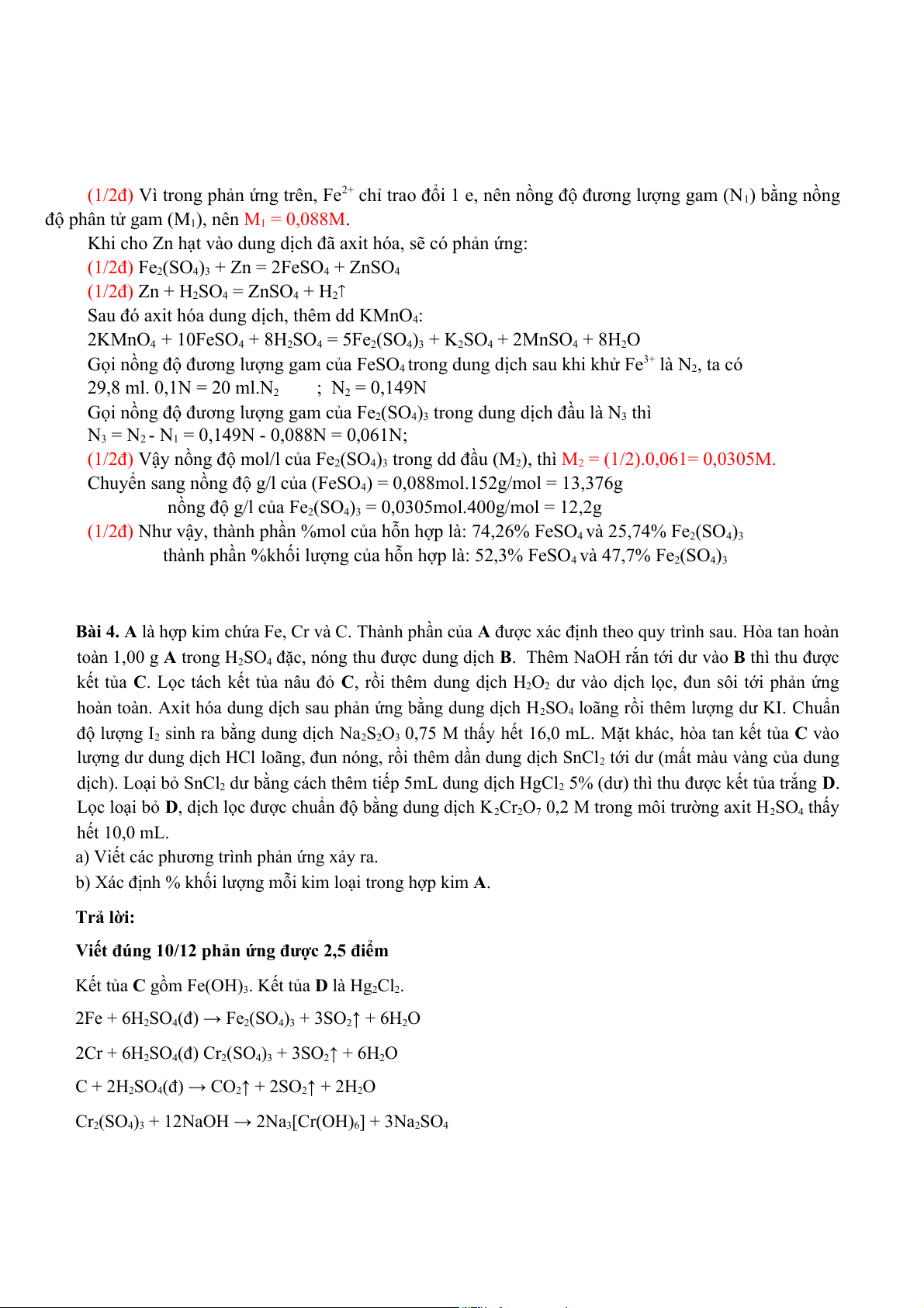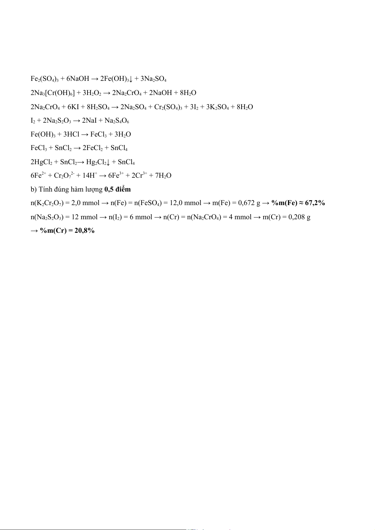 2O7) = 2,0 mmol → n(Fe) = n(FeSO ) = 12,0 mmol → m(Fe) = 0,672 g → 4 %m(Fe) ≈ 67,2% n(Na2S O 2