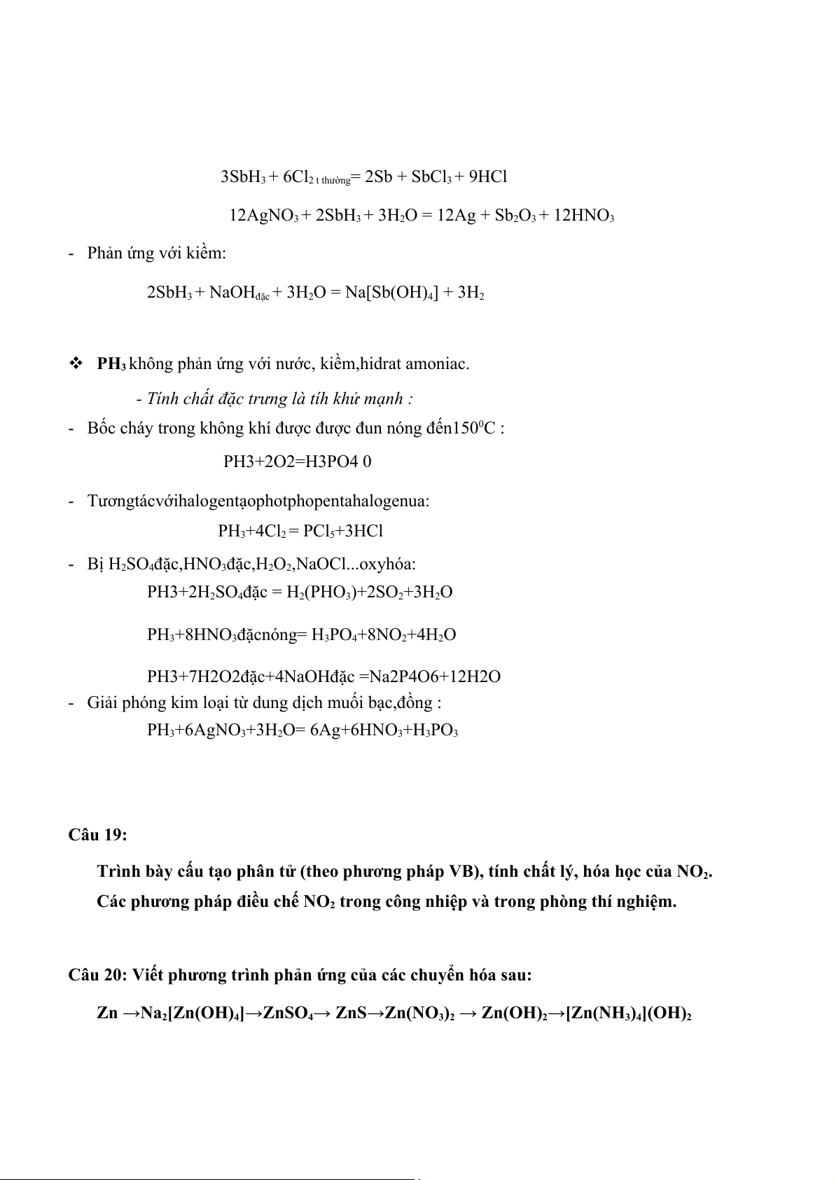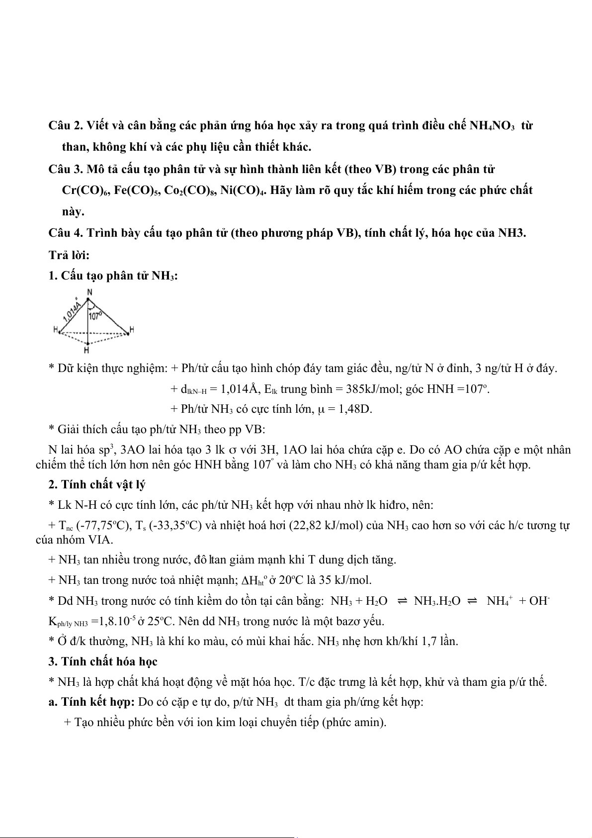 Câu 4. Trình bày cấu tạo phân tử (theo phương pháp VB), tính chất lý, hóa học của NH3. Trả lời: