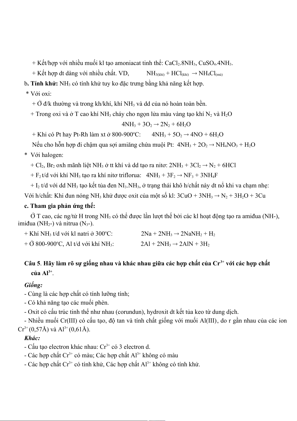- Các hợp chất Cr3+ có tính khử, Các hợp chất Al3+ không có tính khử.