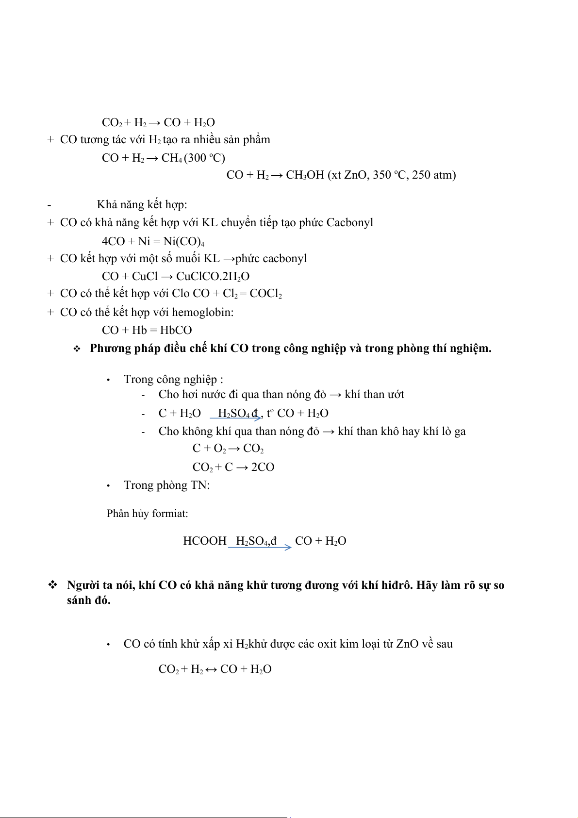 + Điều chế H : theo phương pháp khí than nước từ than và nước. 2 C + H O CO + H 2 2 CO + H O CO 2 + H 2 2