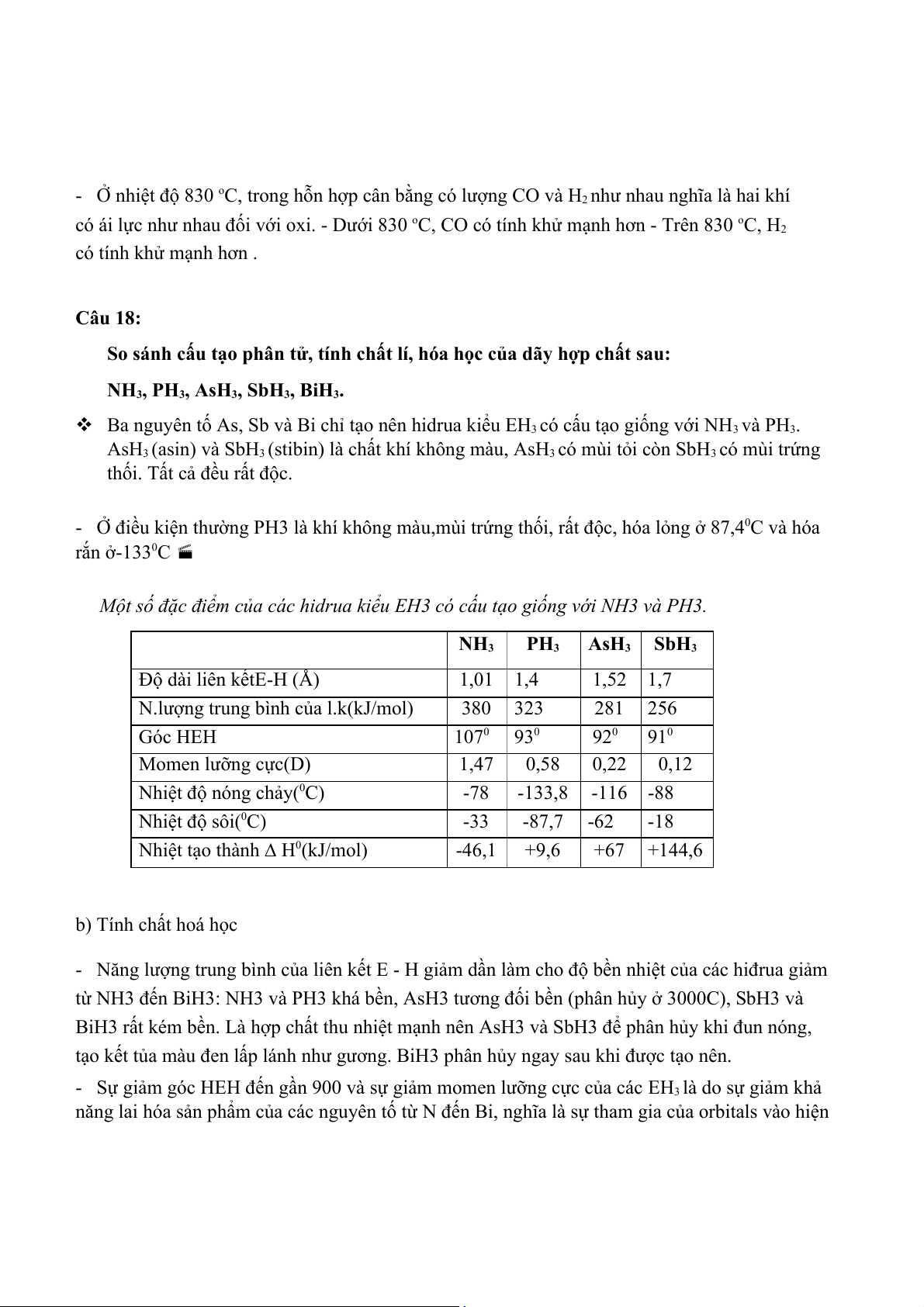 nc (-77,75 C), Ts (-33,35 C) và nhiệt hoá hơi (22,82 kJ/mol) của NH cao hơn so với các h/c tương tự 3 cja nhóm VIA.