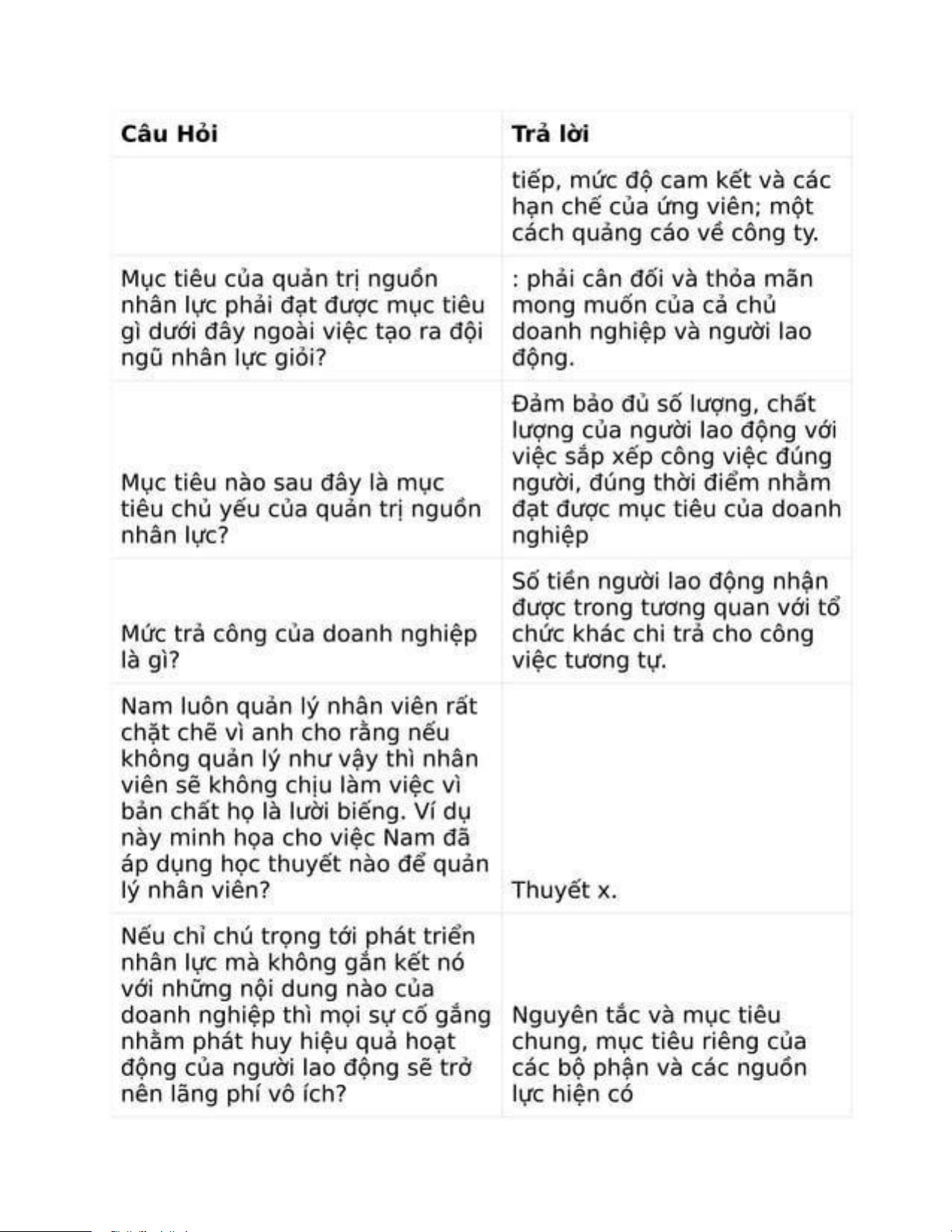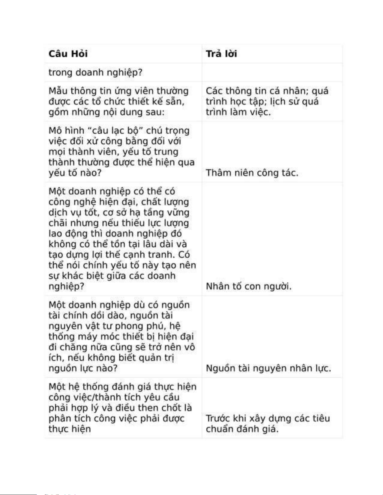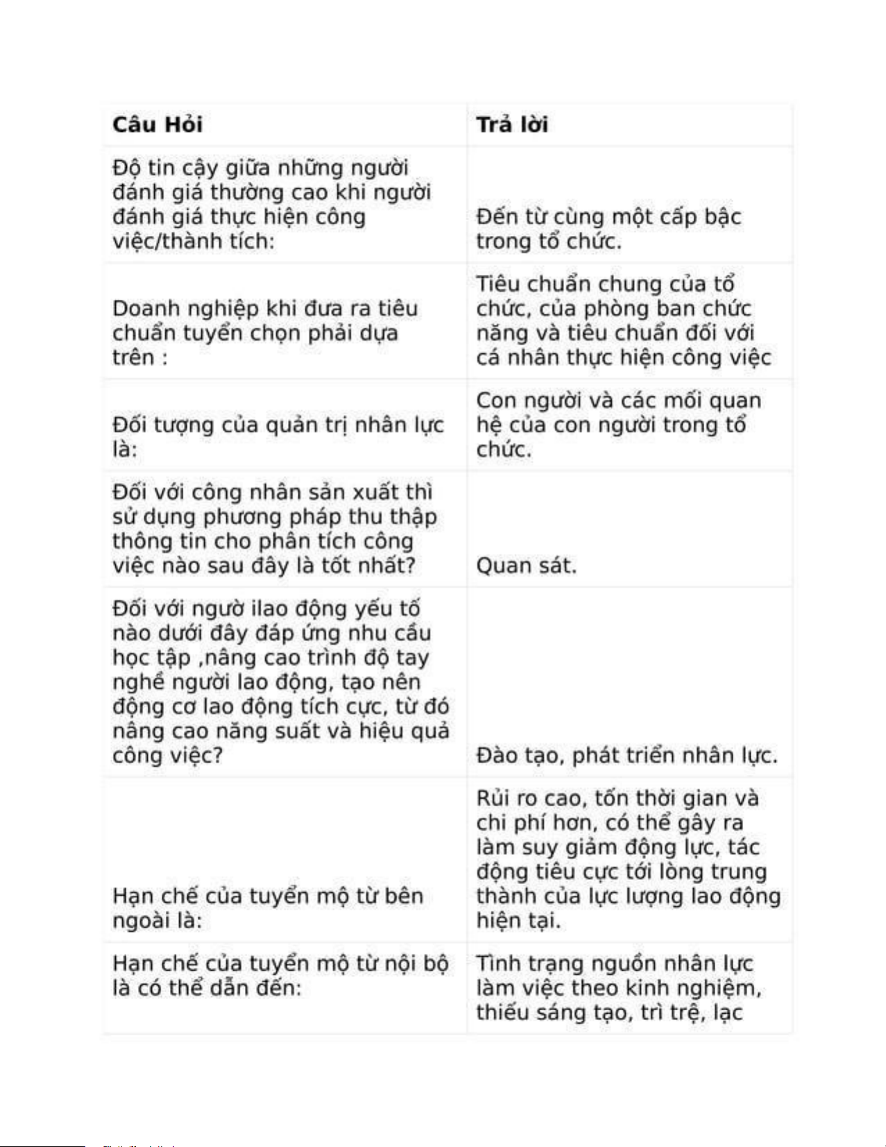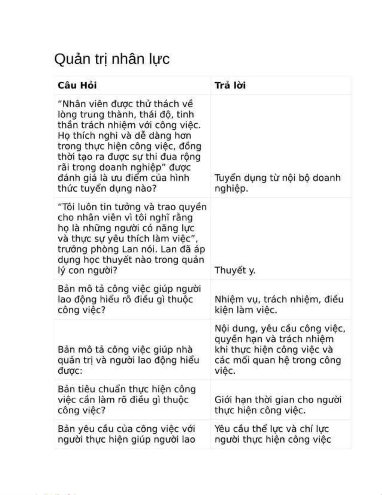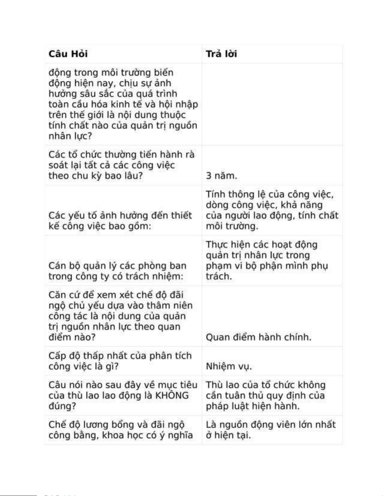 Câu Hỏi Trả Lời Về Quản Trị Nhân Lực | Môn Quản trị nhân lực - Đại học Kinh Tế Quốc Dân