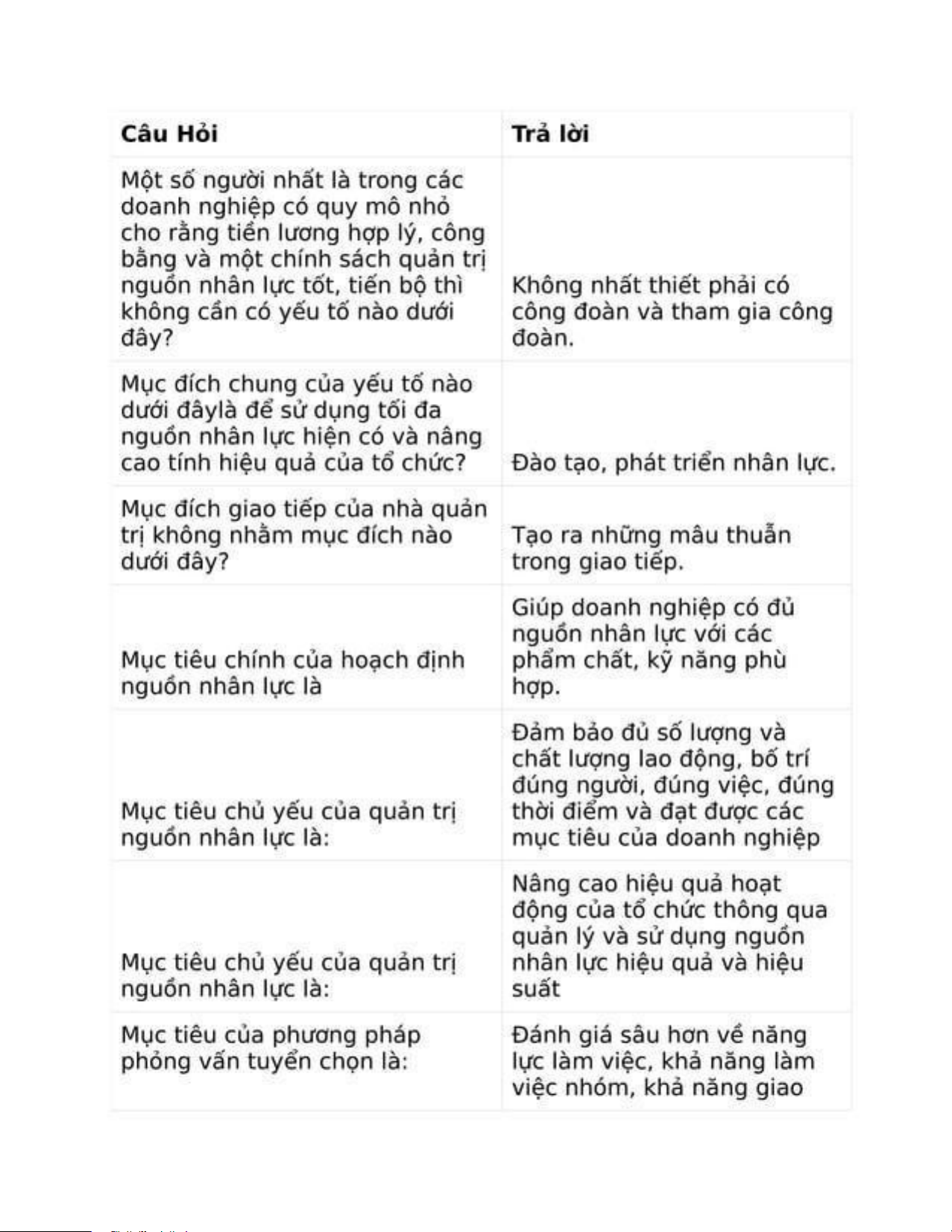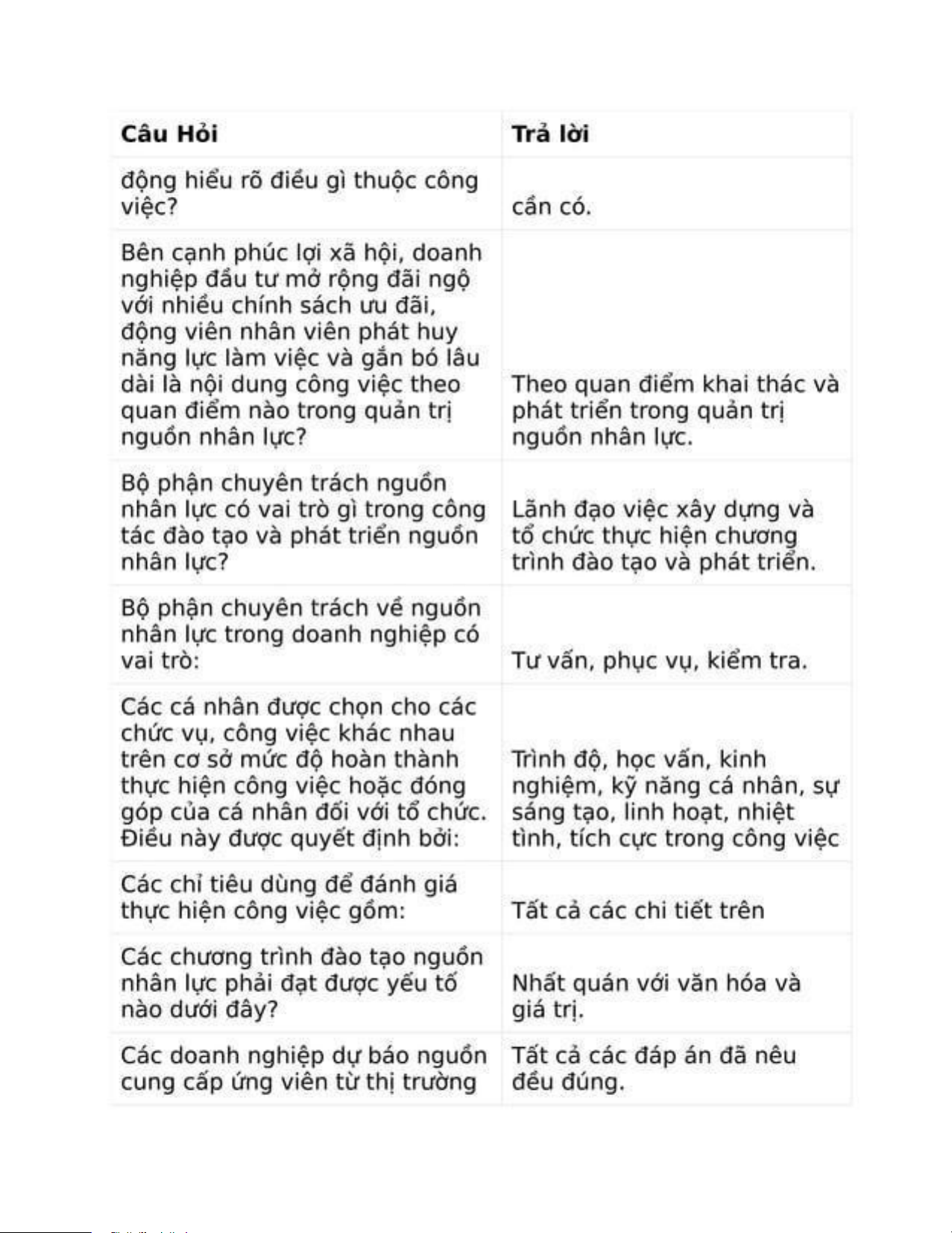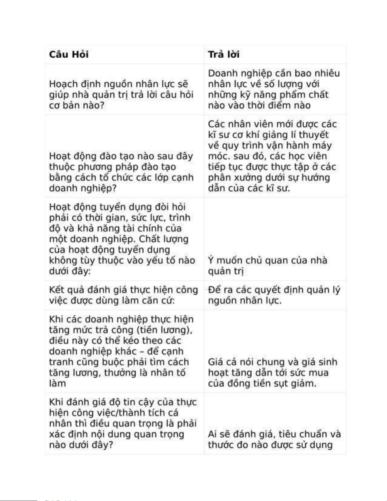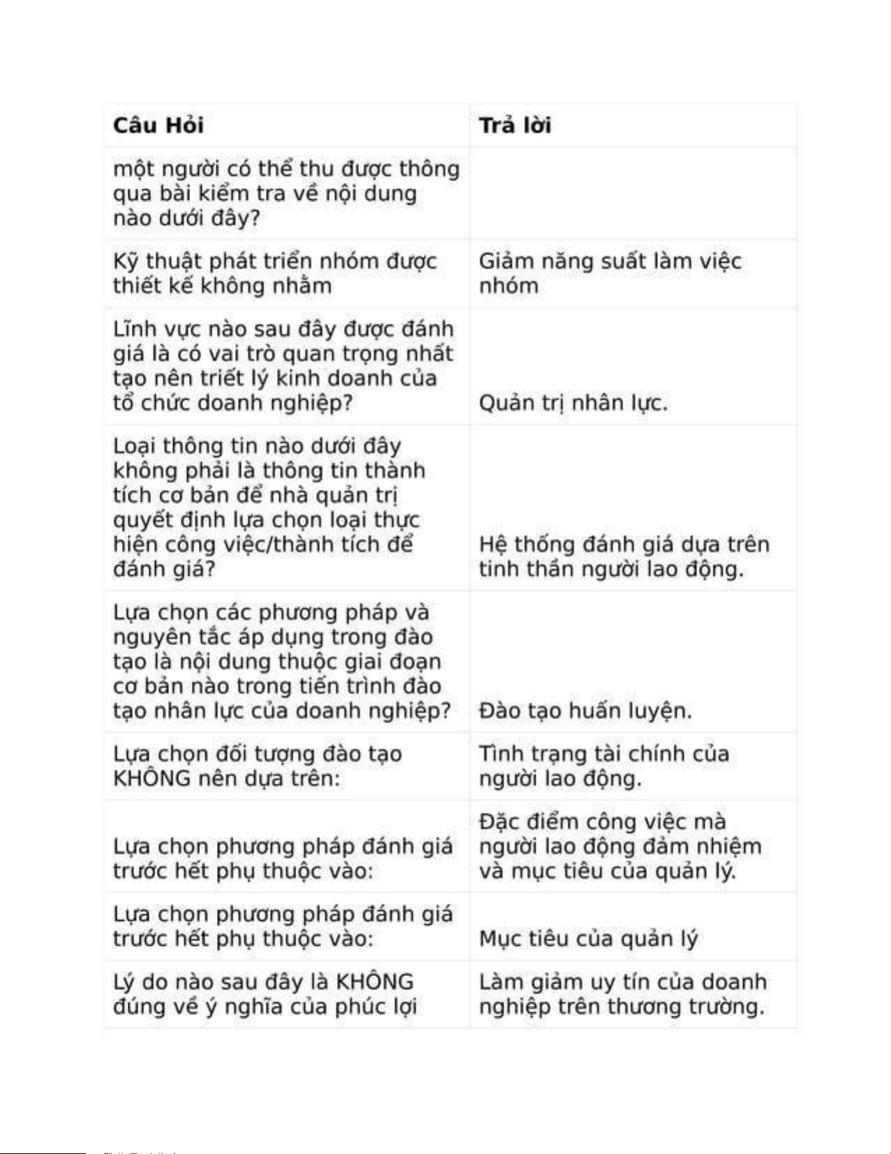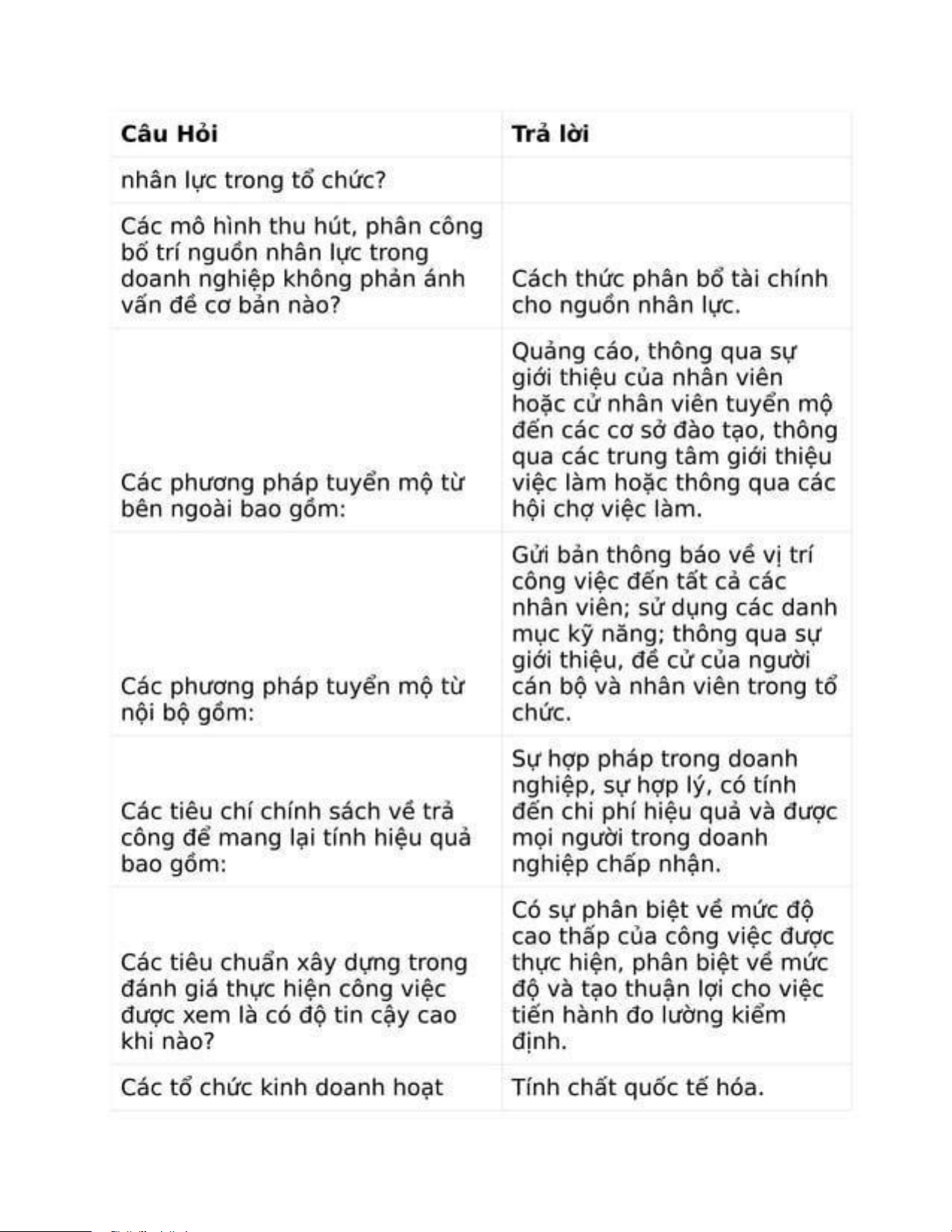 Câu Hỏi Trả Lời Về Quản Trị Nhân Lực | Môn Quản trị nhân lực - Đại học Kinh Tế Quốc Dân