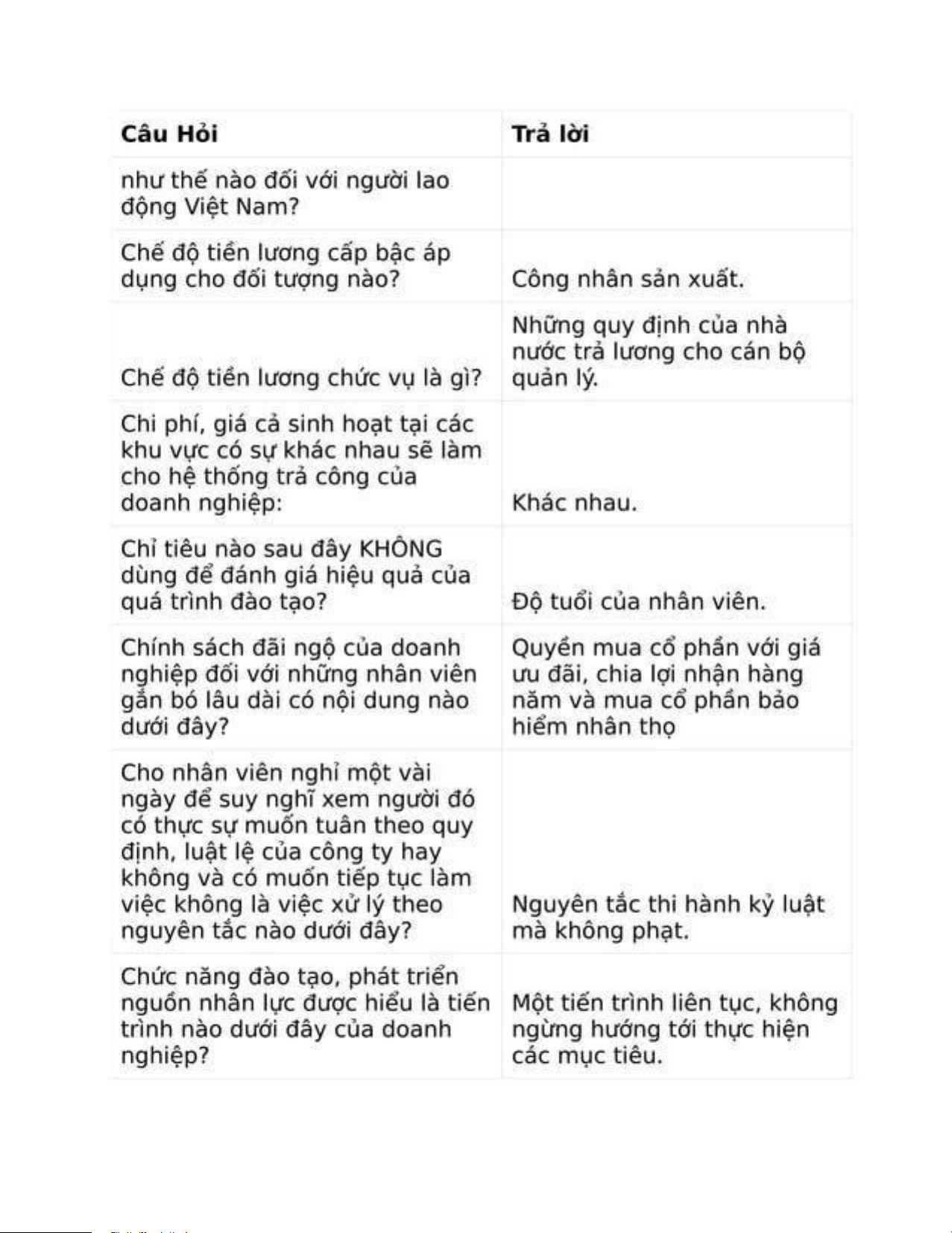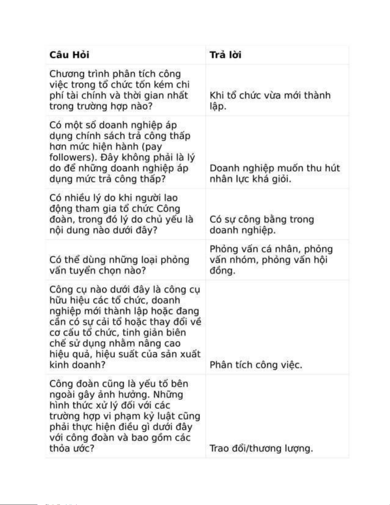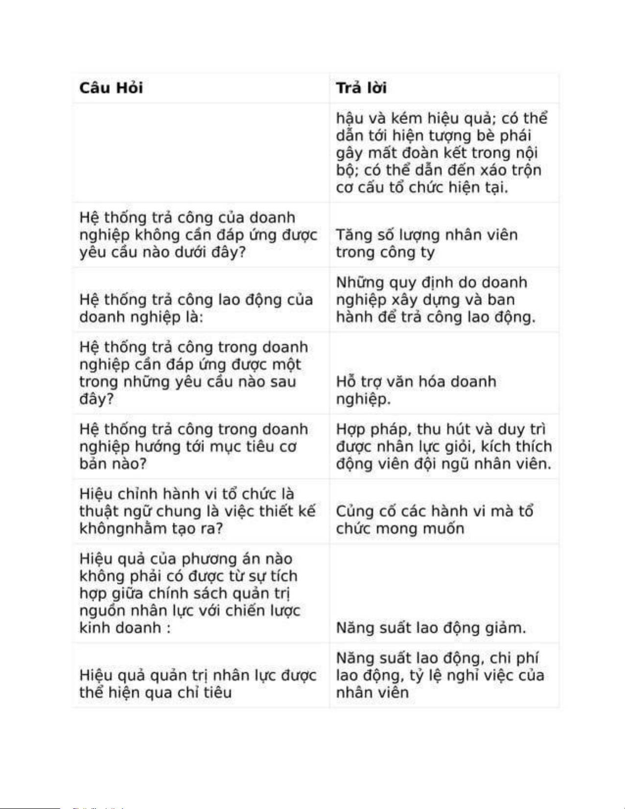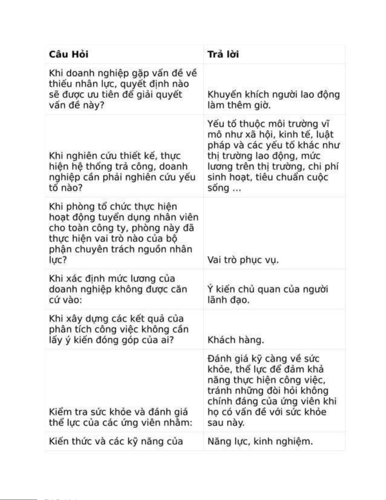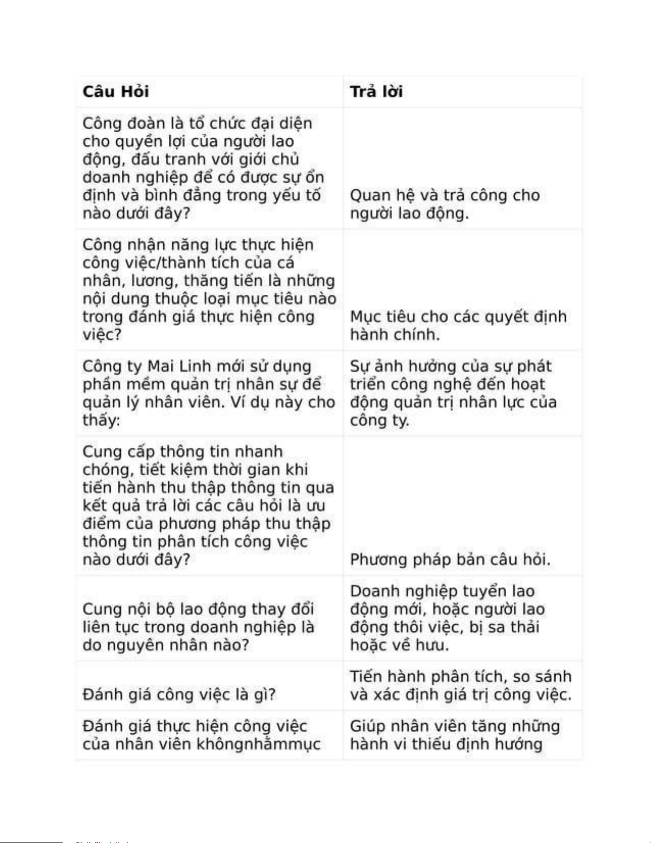 Câu Hỏi Trả Lời Về Quản Trị Nhân Lực | Môn Quản trị nhân lực - Đại học Kinh Tế Quốc Dân