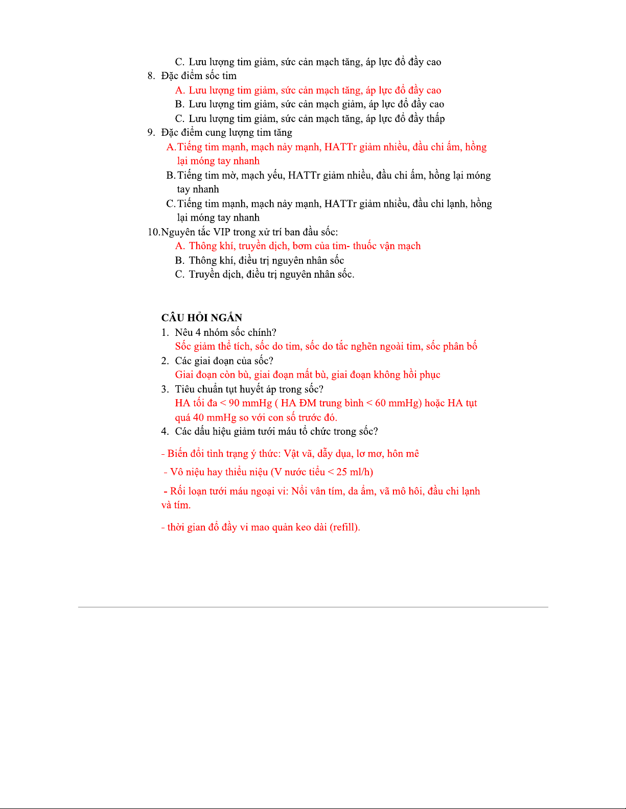 Câu hỏi trắc nghiệm - Chẩn đoán và xử trí sốc cấp cứu - CSSC