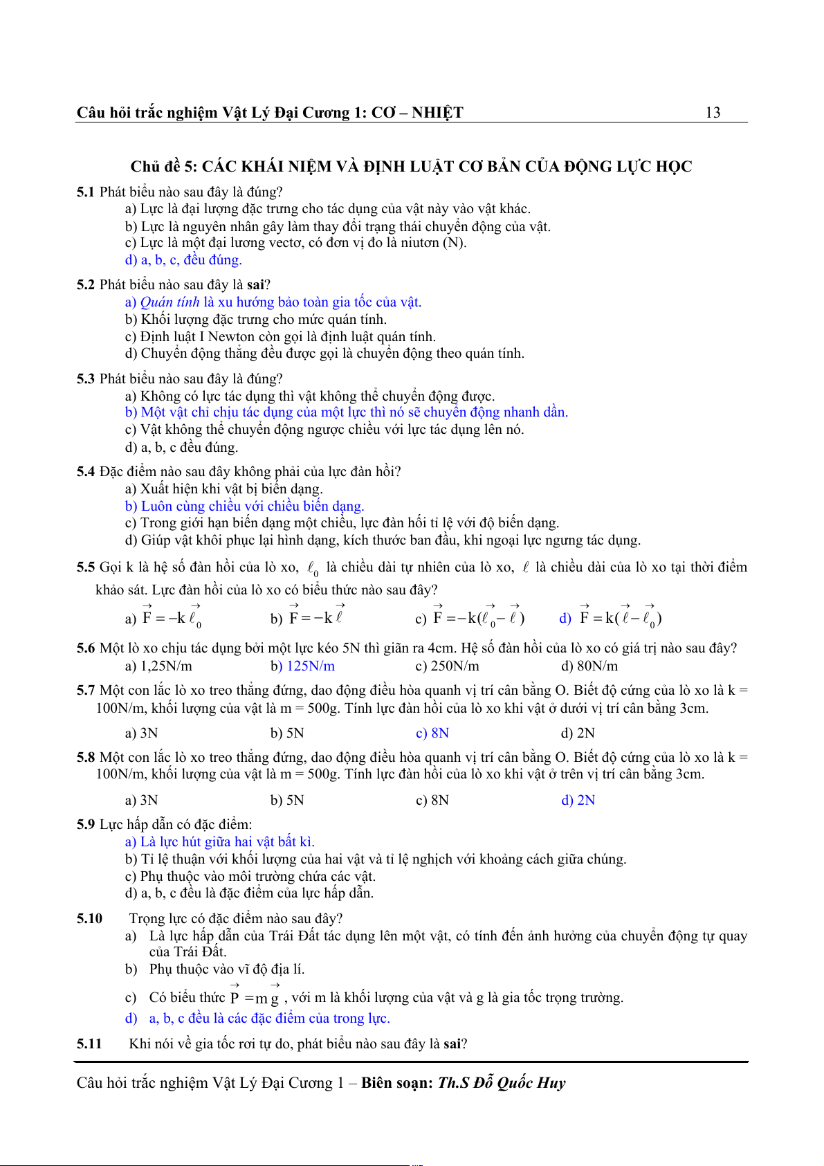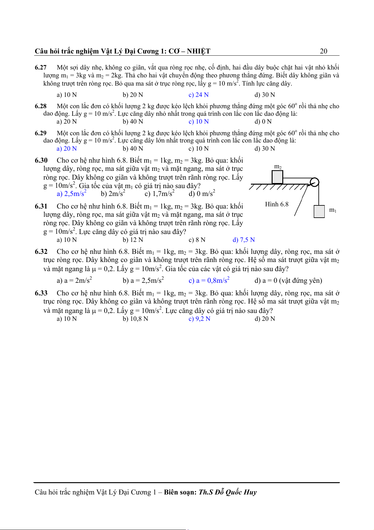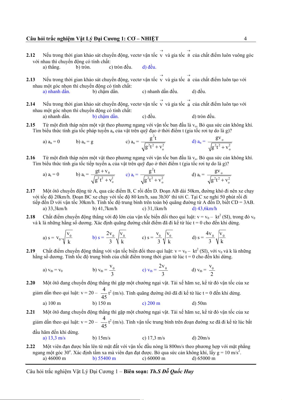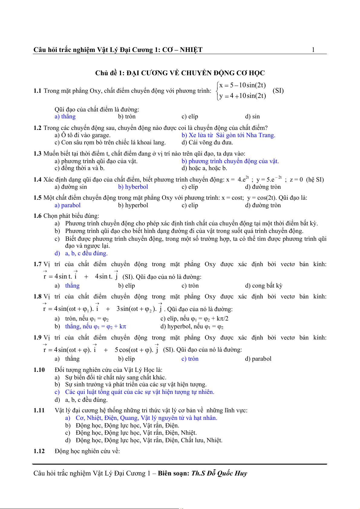 Câu hỏi trắc nghiệm Vật Lý Đại Cương 1 – Biên soạn: Th.S Đỗ Quốc Huy