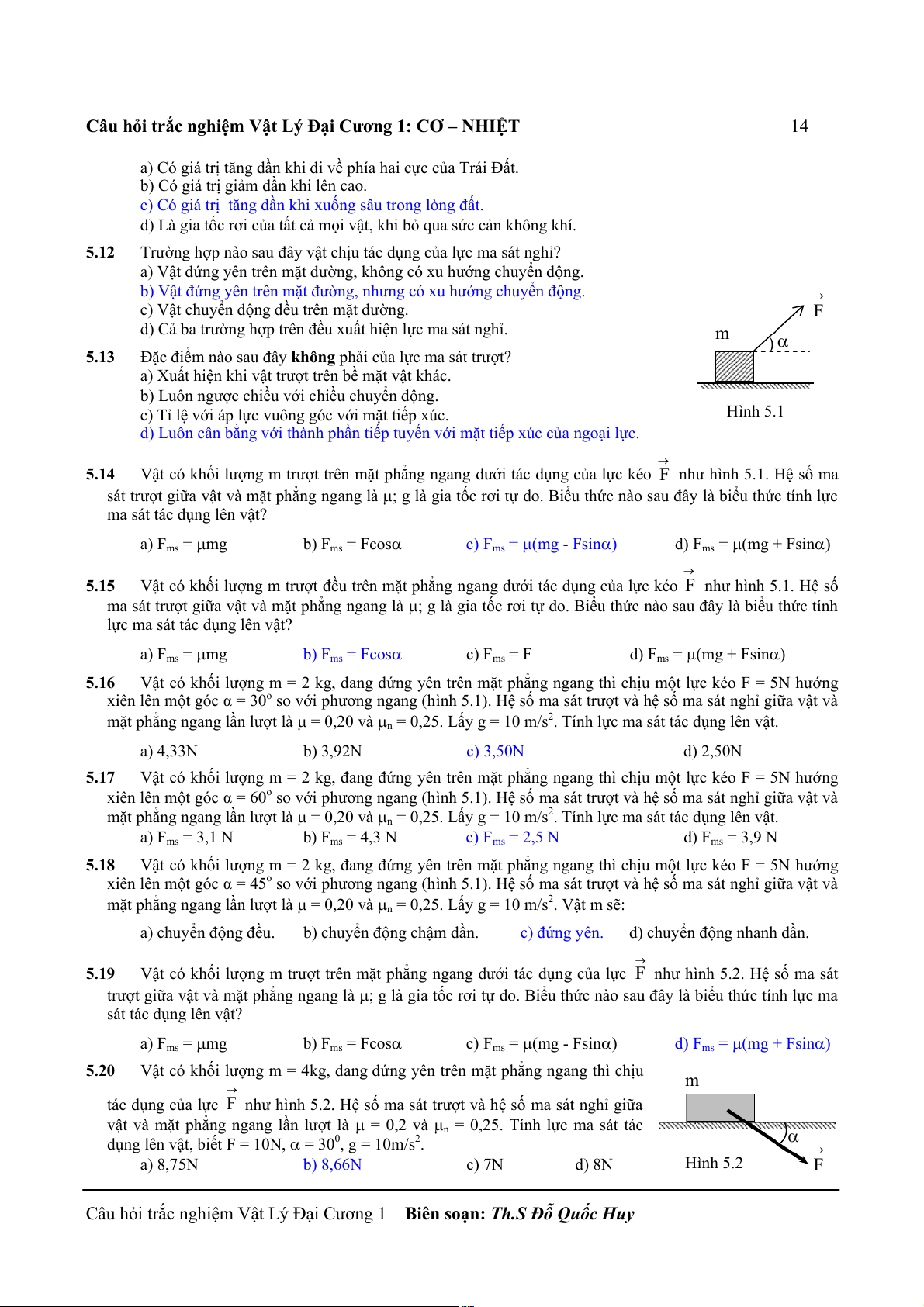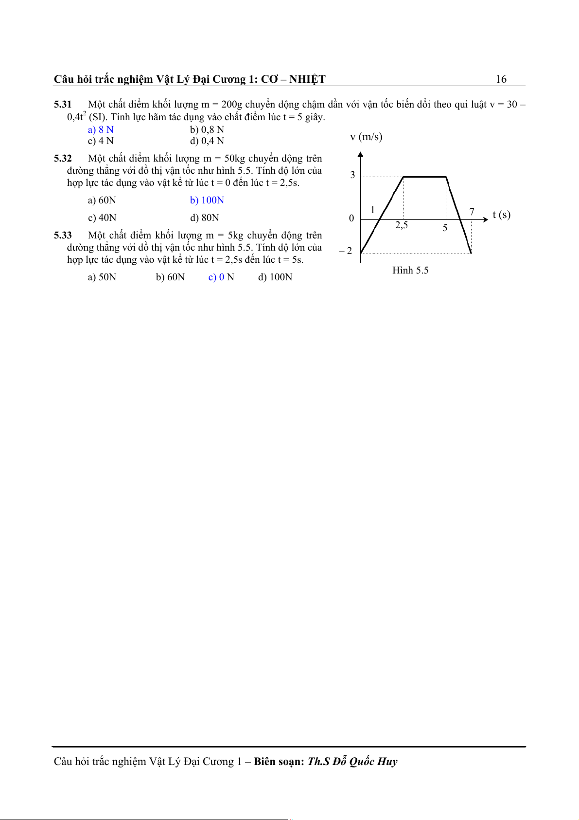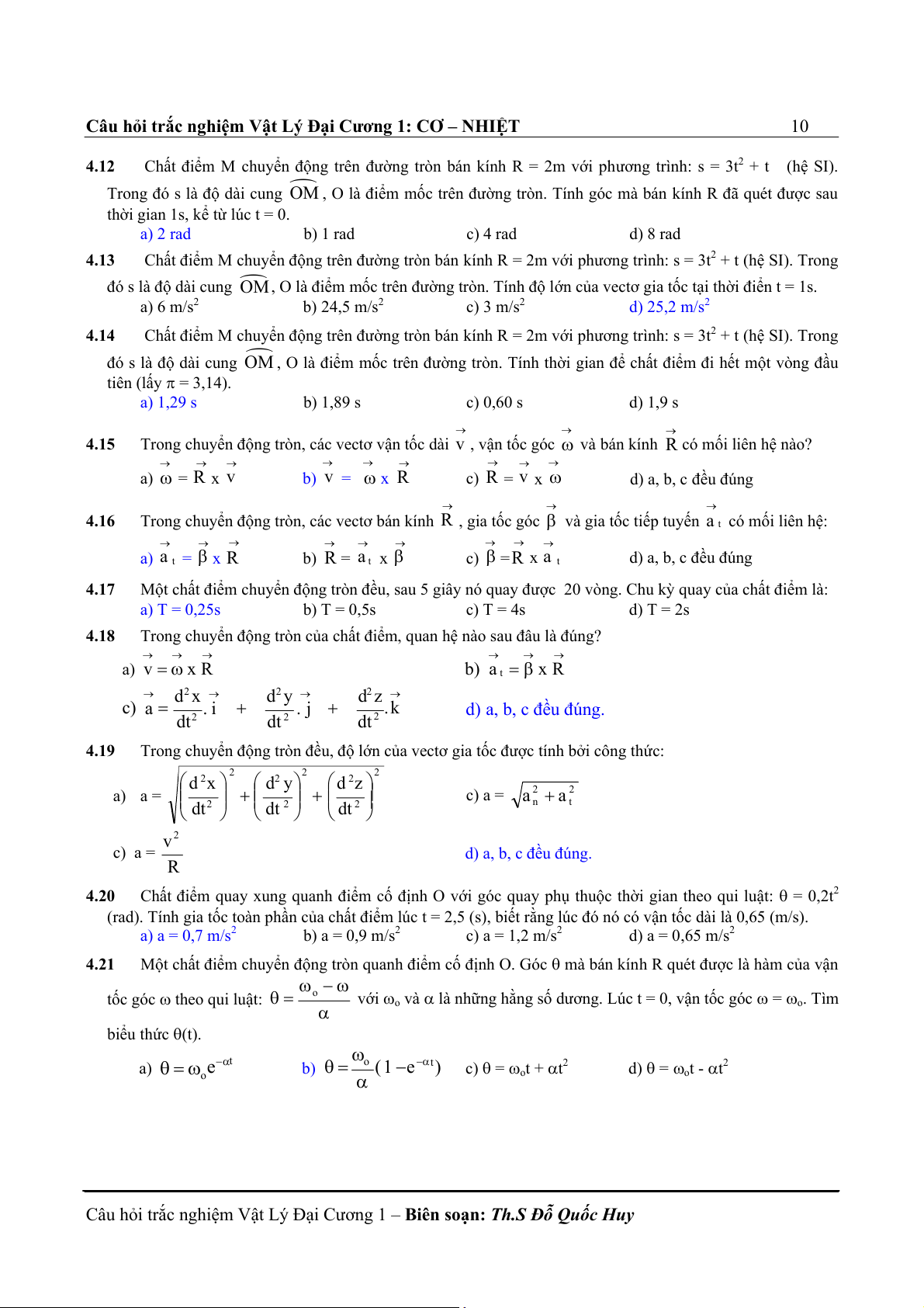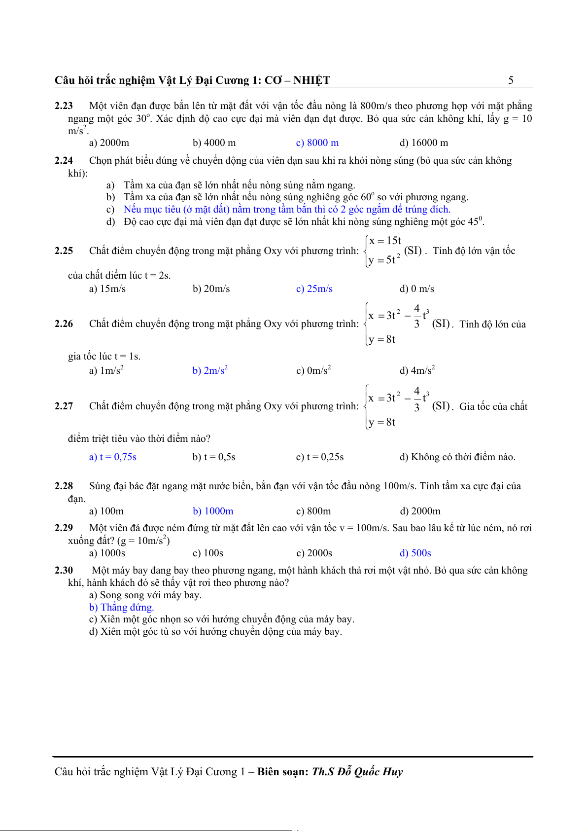 Câu hỏi trắc nghiệm Vật Lý Đại Cương 1 – Biên soạn: Th.S Đỗ Quốc Huy