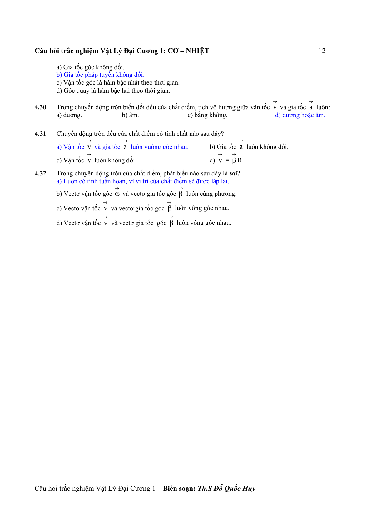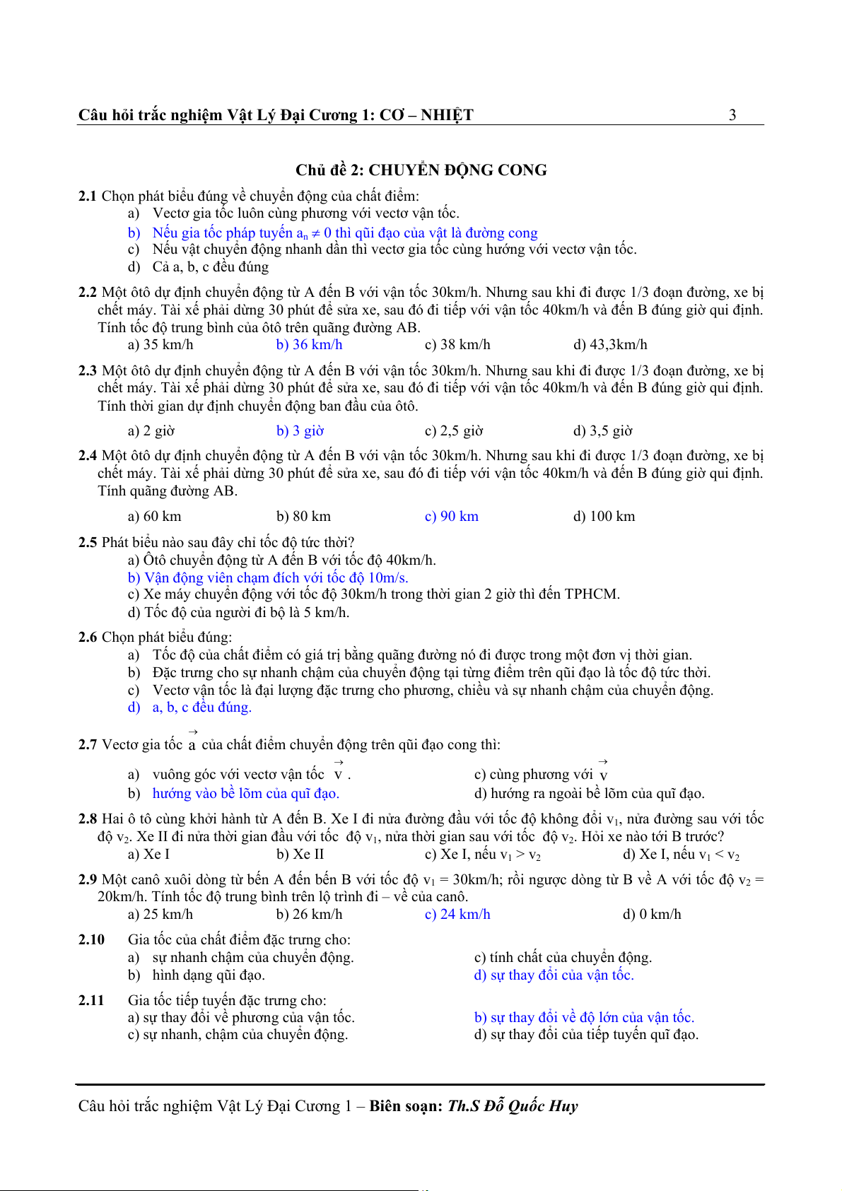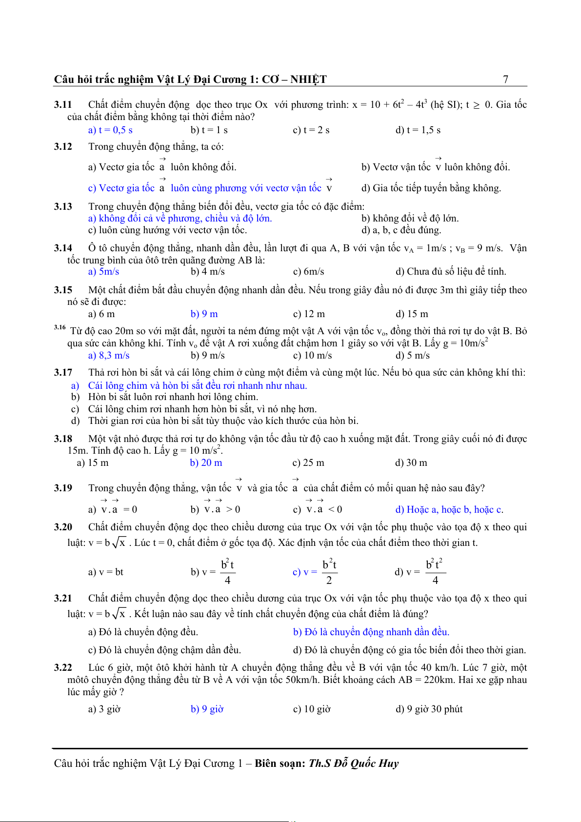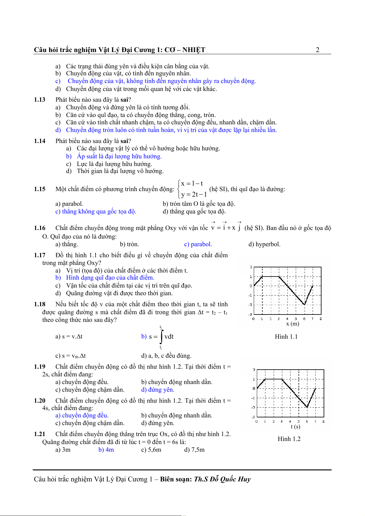 Câu hỏi trắc nghiệm Vật Lý Đại Cương 1 – Biên soạn: Th.S Đỗ Quốc Huy