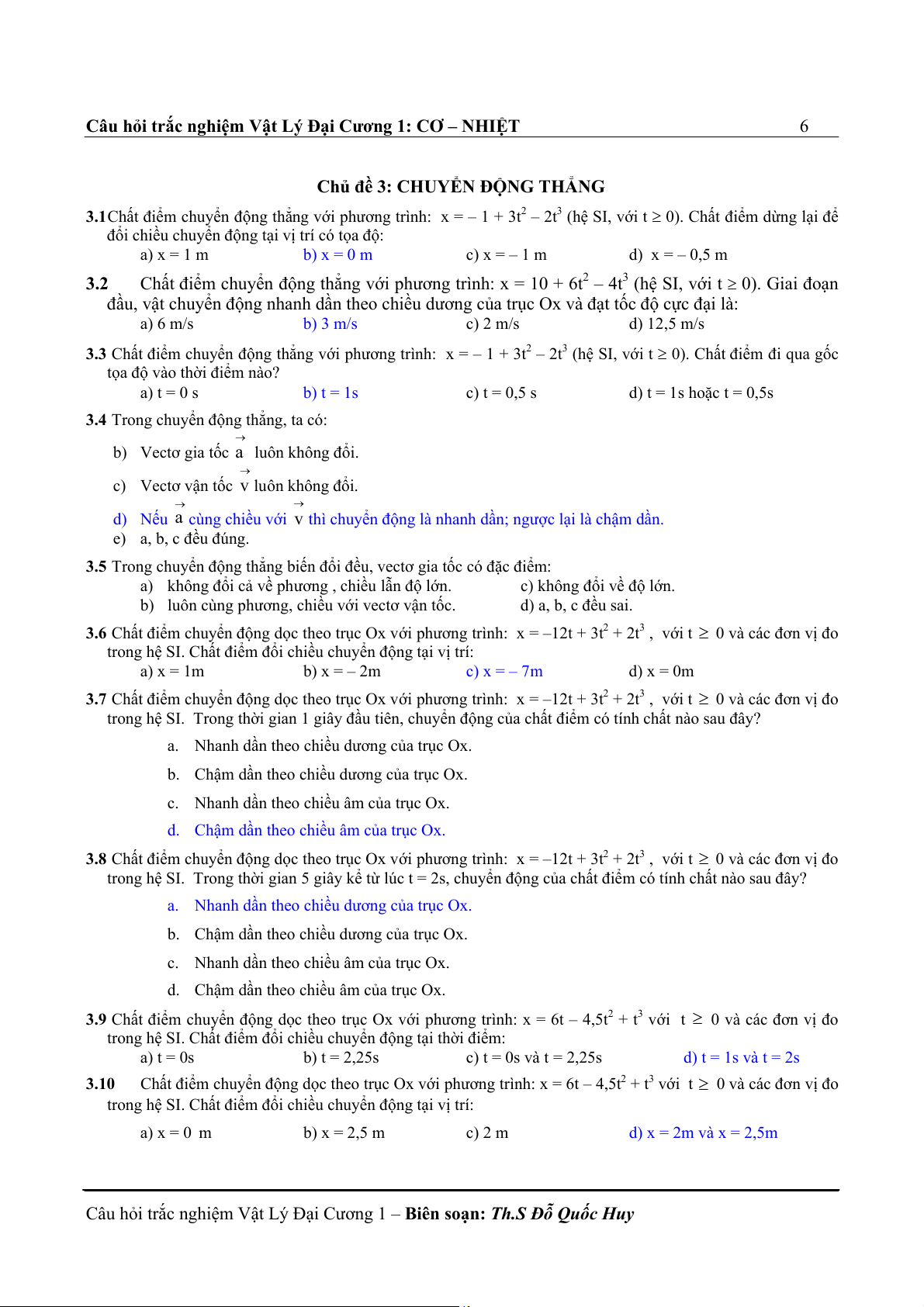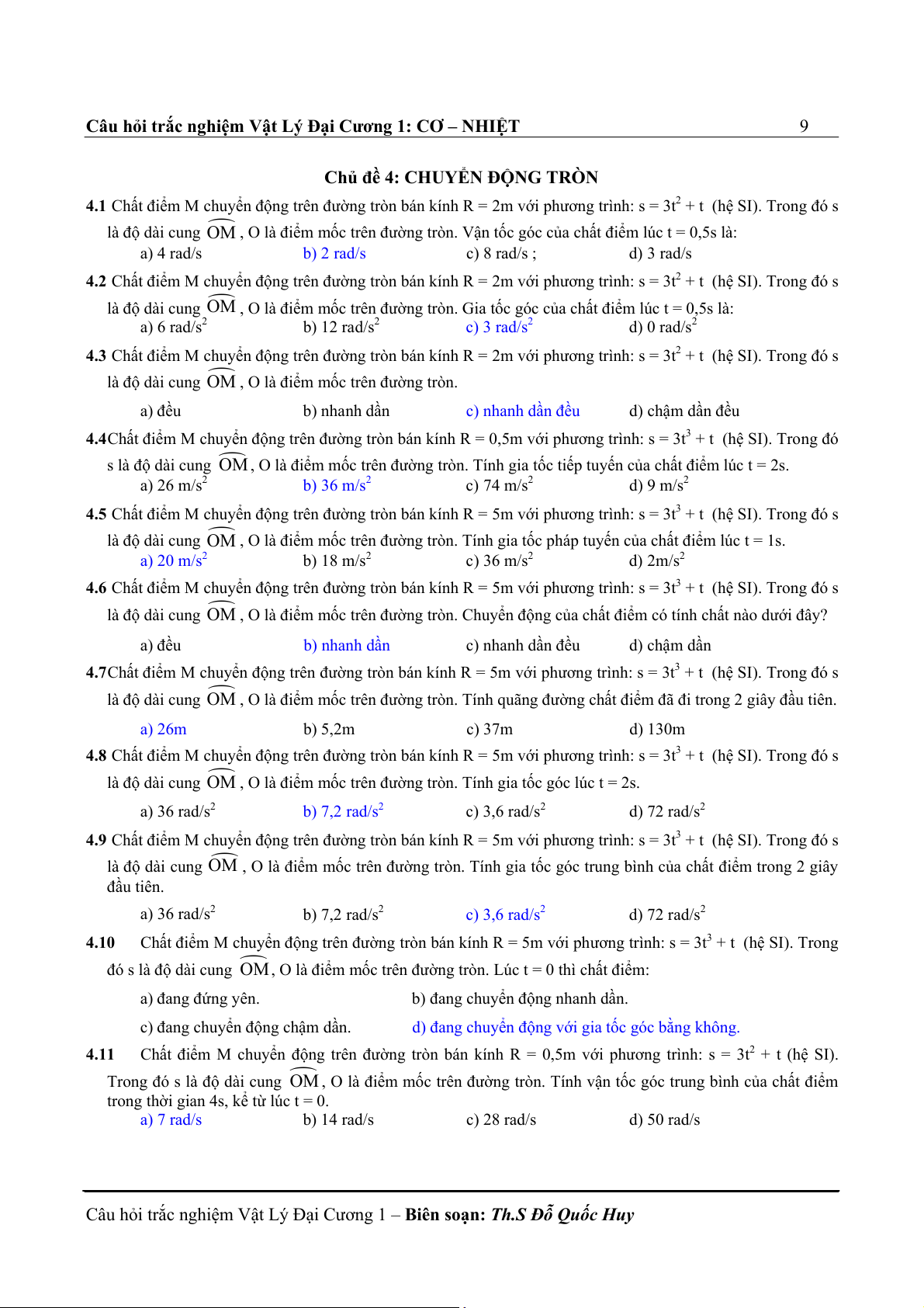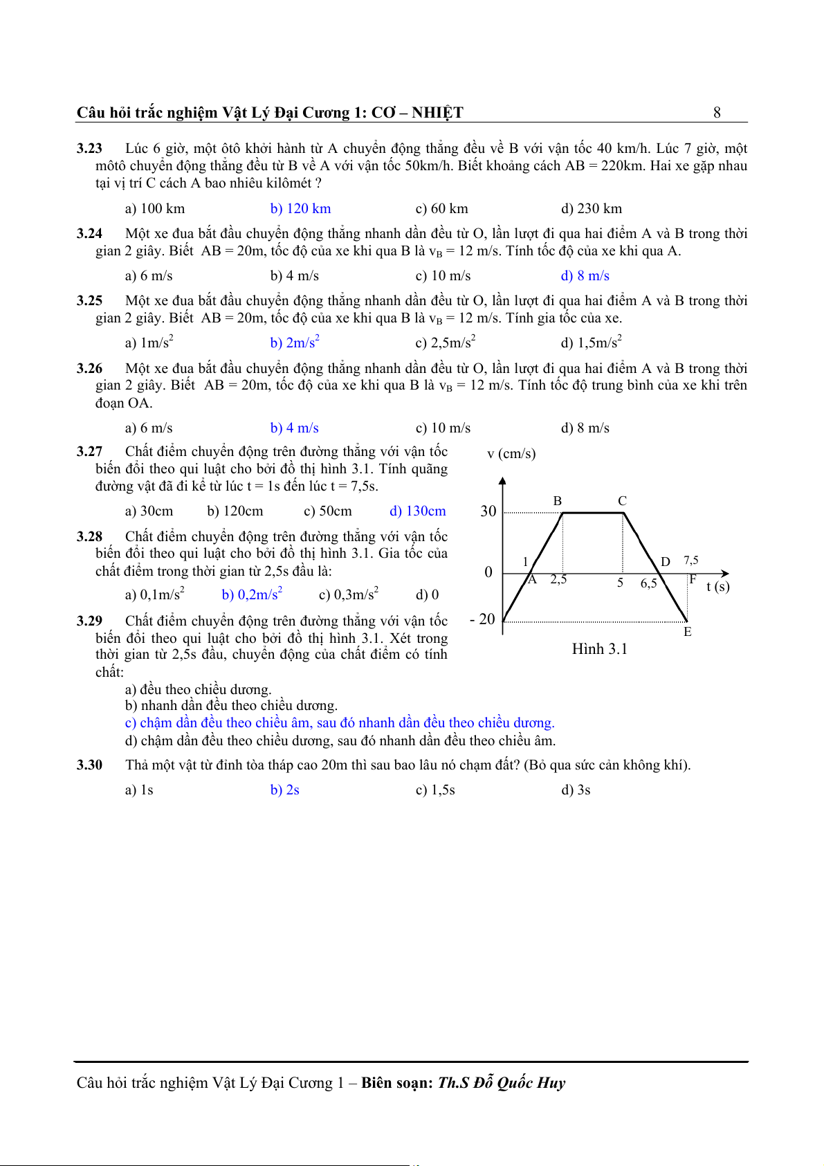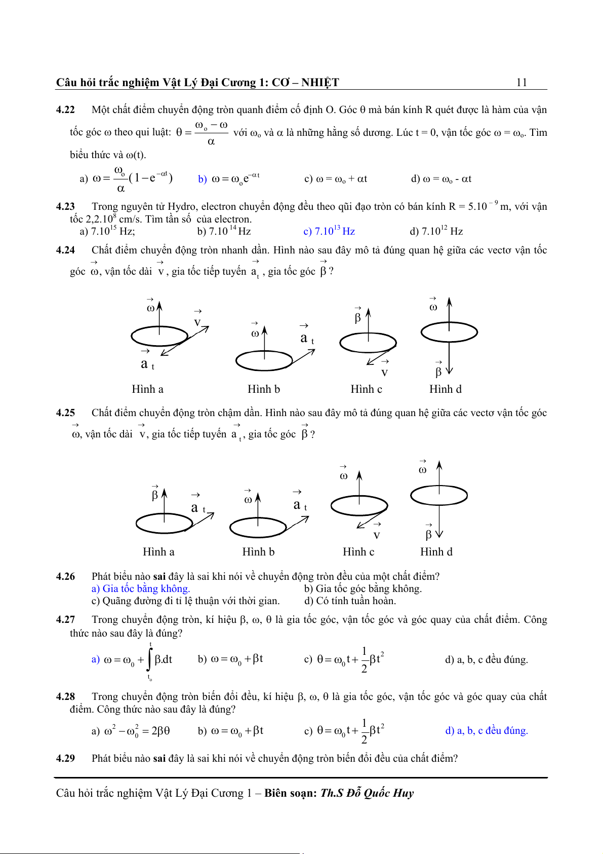 Câu hỏi trắc nghiệm Vật Lý Đại Cương 1 – Biên soạn: Th.S Đỗ Quốc Huy
