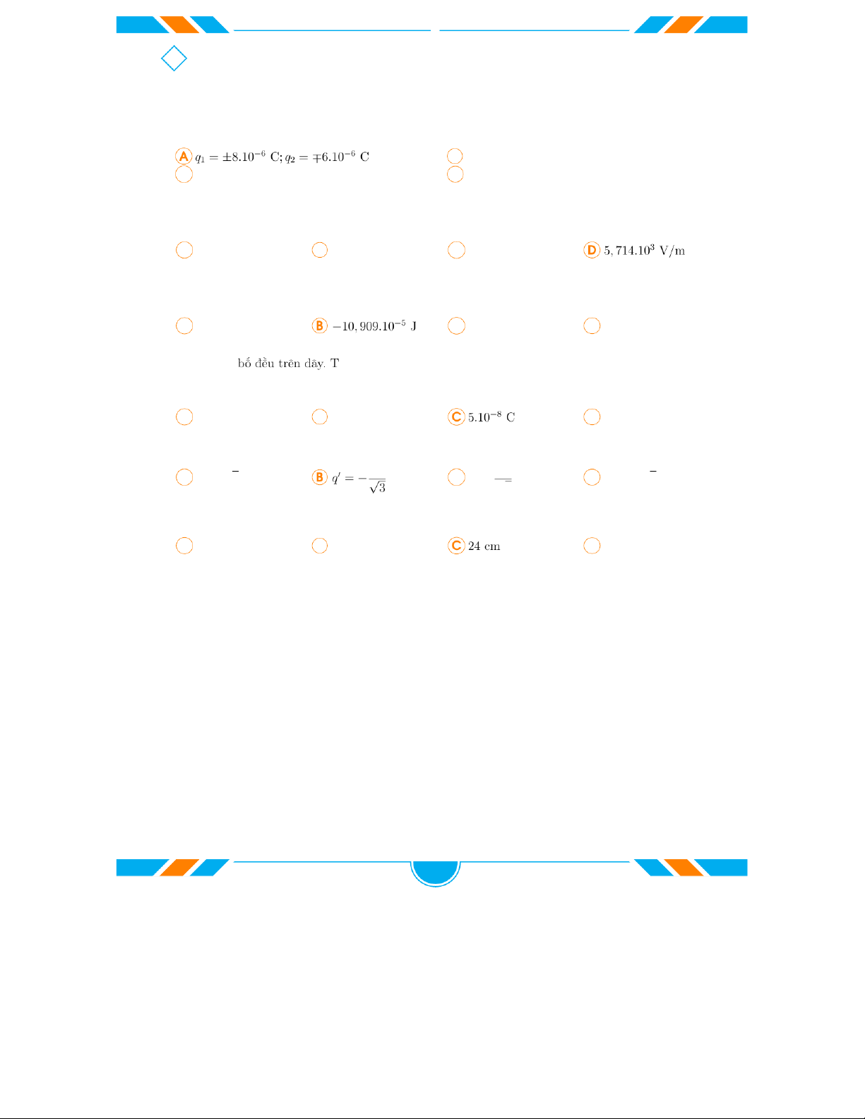 Câu 5. Tại các đỉnh của tam giác đều ABC cạnh acó 3 điện tích điểm q. Cần phải đặt tại tâm giác điện t A íqc′h = q √3q. q .C √3.Dq′=−√3q.